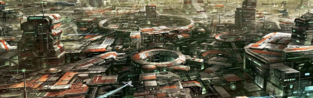 Star Citizen - Guide Galactique - Système Stanton4ArcCorp, Stanton III, est le monde le plus impressionnant visuellement à l’heure actuelle. Alors que les autres planètes, y compris la très polluée Hurston, gardent encore une trace de leur origine naturelle, ArcCorp est à présent un monde entièrement recouvert de constructions. Toute la surface a été sculptée, délimitée en parcelles et dévorée par les bâtiments, ne laissant rien à la nature. ArcCorp produit en masse des moteurs à fusion, pour fournir des moteurs à des centaines de milliers de vaisseaux civils chaque année. Les marchands qui débarquent sur ArcCorp doivent savoir qu’en plus de bonnes affaires sur les moteurs, ils peuvent trouver ici à peu près tout et n’importe quoi. ArcCorp n’est pas regardante sur l’identité de ceux à qui elle loue ses terrains, et des centaines d’entreprises plus petites ont élu domicile près de la région polaire nord de la planète. Les anthropologues qui connaissent bien les Xi’An ont affirmé qu’ArcCorp est ce qui ressemble le plus à un monde-usine Xi’An chez les humains, et beaucoup en ont tiré la conclusion que notre civilisation évoluera un jour comme la leur.