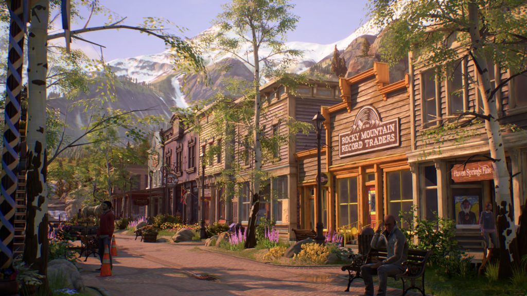 Sur le plan artistique, les jeux Life is Strange se sont toujours démarqués. On ne change pas une équipe qui gagne, et on retrouve donc ce cachet si unique. Toutefois, on a cette fois-ci droit à beaucoup plus de couleurs. Chaque bâtisse d'Haven se pare d'une couleur différente, et on se retrouve face à une allée principale très colorée et chaleureuse. Immédiatement, on s'y sent bien, et chaque intérieur est également richement décoré et procure un sentiment de bien être. Dommage que tout cela soit entaché par une technique en dents de scie. Sur PS5, le jeu propose une résolution 4K, limitée à 30 images/seconde. On pourrait penser que ce compromis permettrait au jeu de rester constant en terme de fluidité, mais il n'en est rien. Fréquemment, le framerate prend un petit coup, et on sent comme un accroc à l'image. Ce n'est jamais bien long, mais perceptible. J'ai tout d'abord pensé que c'était lié à l'option Raytracing activée dans les options graphiques, mais non. Que l'option soit active ou non, le jeu reste soumis à ces hoquets fréquents. Deck Nine Games travaille actuellement sur un patch pour corriger cela.