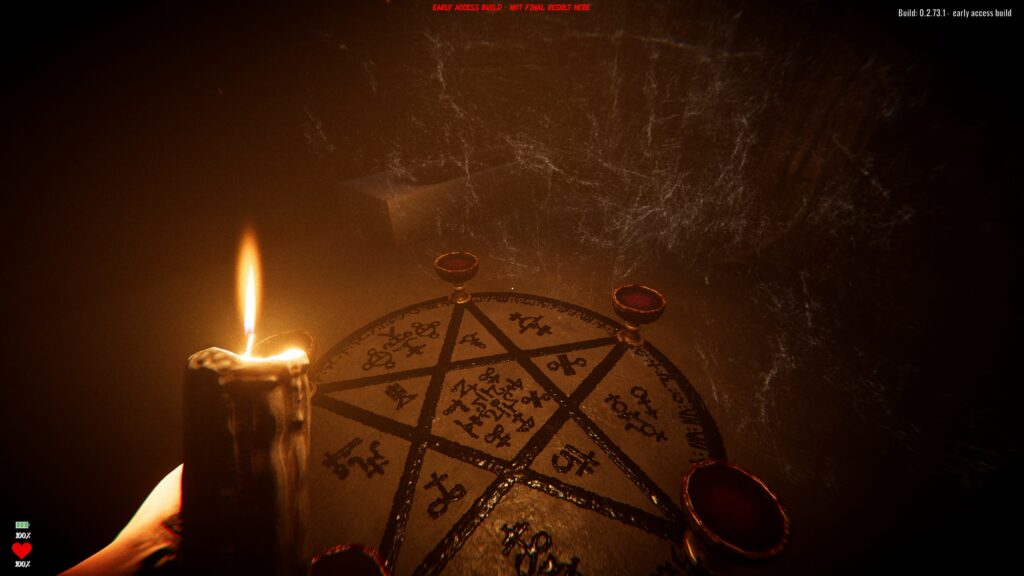 On est dans une maison abandonnée avec peu d'indications et beaucoup de doute sur ce que l'on doit faire. Heureusement, un petit speach et un tableau nous aident sur notre objectif à atteindre. On doit se balader dans une maison à l'ambiance vraiment horrifique et modélisée pour faire flipper le plus possible. Le but est aisé : on doit ramasser des boites à musique et conclure un rituel dans une cave pas du tout rassurante pour enfermer une entité et s'en sortir vivant.