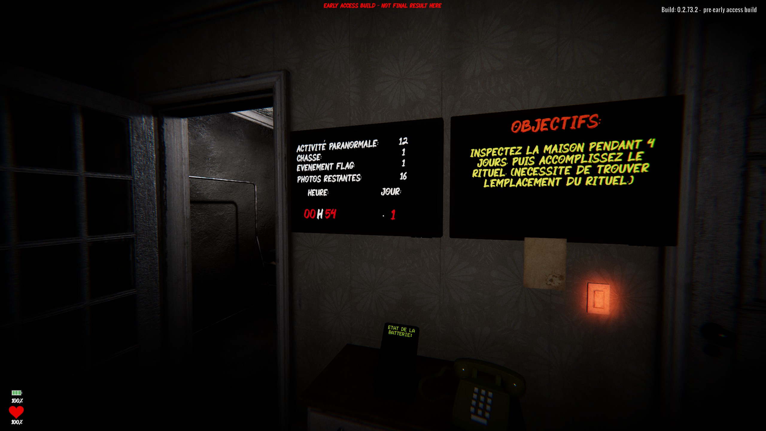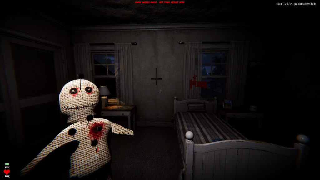 On est dans une maison abandonnée avec peu d'indications et beaucoup de doute sur ce que l'on doit faire. Heureusement, un petit speach et un tableau nous aident sur notre objectif à atteindre. On doit se balader dans une maison à l'ambiance vraiment horrifique et modélisée pour faire flipper le plus possible. Le but est aisé : on doit ramasser des boites à musique et conclure un rituel dans une cave pas du tout rassurante pour enfermer une entité et s'en sortir vivant.