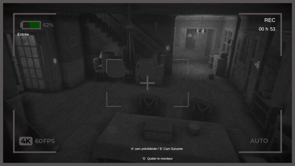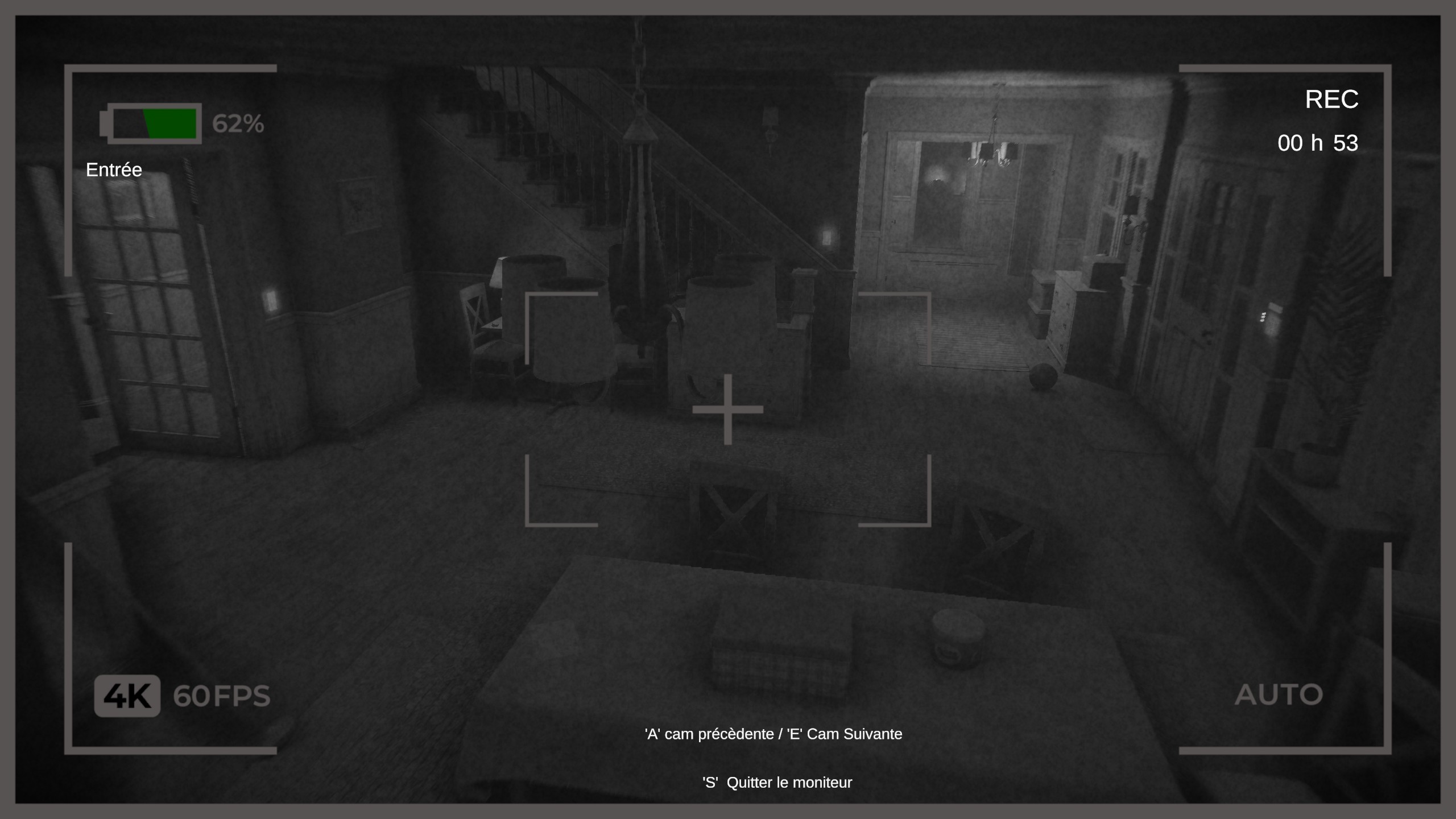 Spoiler Alert : c'est pas du tout simple. Il y a tellement d'endroits possibles entre les placards, les tiroirs, et le tout dans une paranoïa avec une entité qui joue avec nos nerfs en allumant une alarme, en brisant des objets et en nous chassant pour nous faire notre fête. Notre petite pièce contient un PC pour nos caméras, un lit pour dormir (pas du tout en sécurité), et une station de charge pour notre lampe de poche avec une batterie qui se décharge un peu trop vite à mon goût.