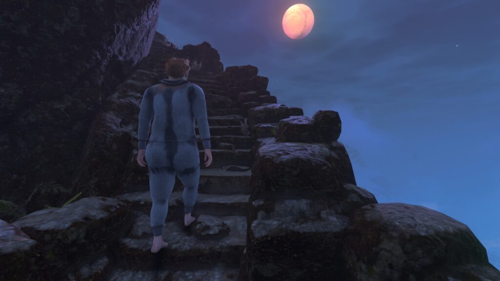 On marche ainsi d'un point à un l'autre, indiqué par une lumière plus loin, qui signe la fin d'un chapitre et le début d'un autre, en espérant ne pas se casser la gueule, sous peine de tout escalader à nouveau. Car oui, à part ces fameux points de passage que j'évoquais à l'instant, n'espérez aucune once de gentillesse du jeu, qui conserve votre progression en continu. Si vous tombez, vous êtes bon pour tout recommencer, un retour par le menu principal ne vous fera pas revenir quelques secondes avant le drame. En toute franchise, j'ai mal vécu certaines chutes, même si c'est au final l'affaire de quelques minutes pour tout refaire.