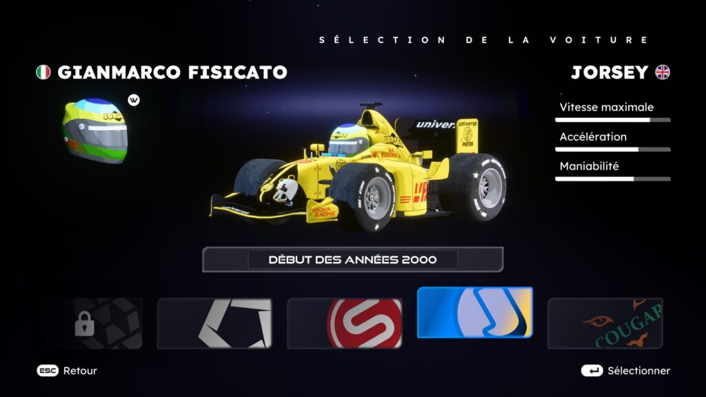 En découvrant Formula Legends, je me suis retrouvé face à un jeu pensé par le studio italien 3DClouds, sorti officiellement le 18 septembre 2025 sur PC, PlayStation, Xbox et Nintendo Switch. Le studio a choisi de ne pas travailler avec une licence officielle, préférant inventer son propre univers inspiré des grandes époques de la Formule. Les voitures, les circuits et les pilotes sont fictifs, mais chacun d’eux rappelle immédiatement des silhouettes, des lignes et des couleurs issues de l’histoire du sport automobile.