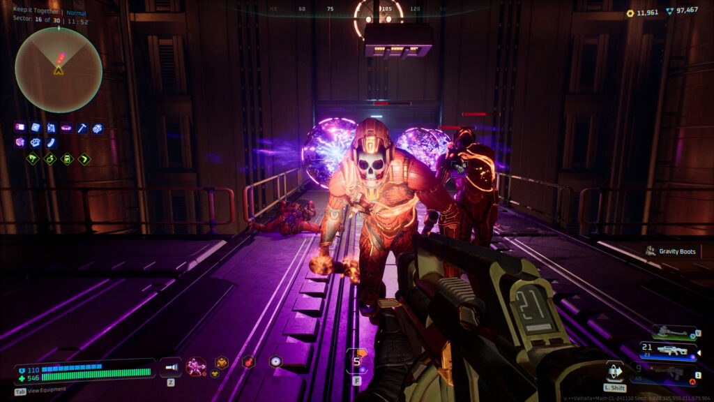 Le système d’augmentations (augments) est central. En combinant des affixes élémentaires, feu, glace, choc, vide, etc., avec diverses améliorations permanentes, chaque run se façonne selon son style. Dans la version 1.0, le contenu s’est enrichi avec de nouveaux éléments psioniques et plasma, renforçant la profondeur des builds possibles.