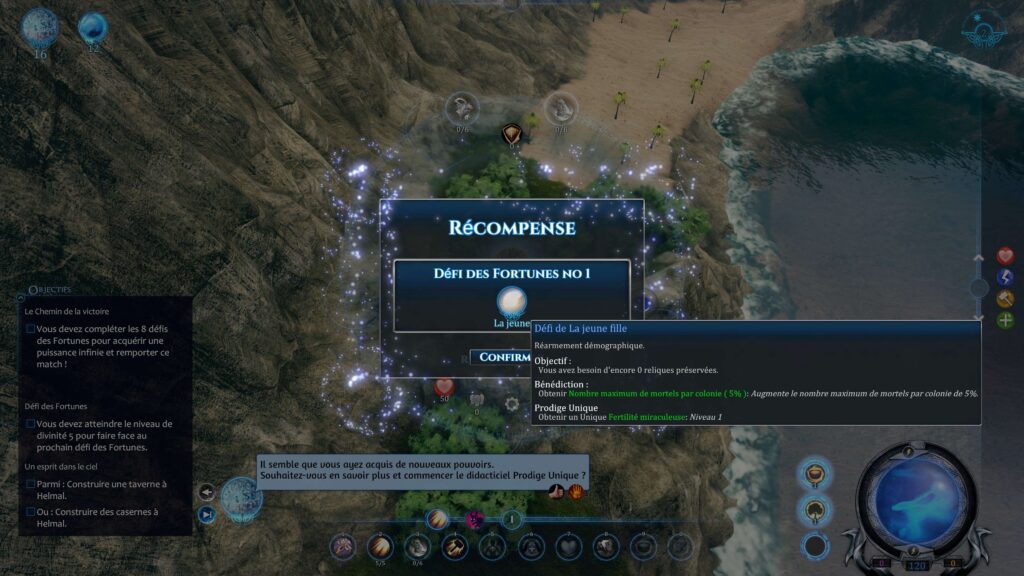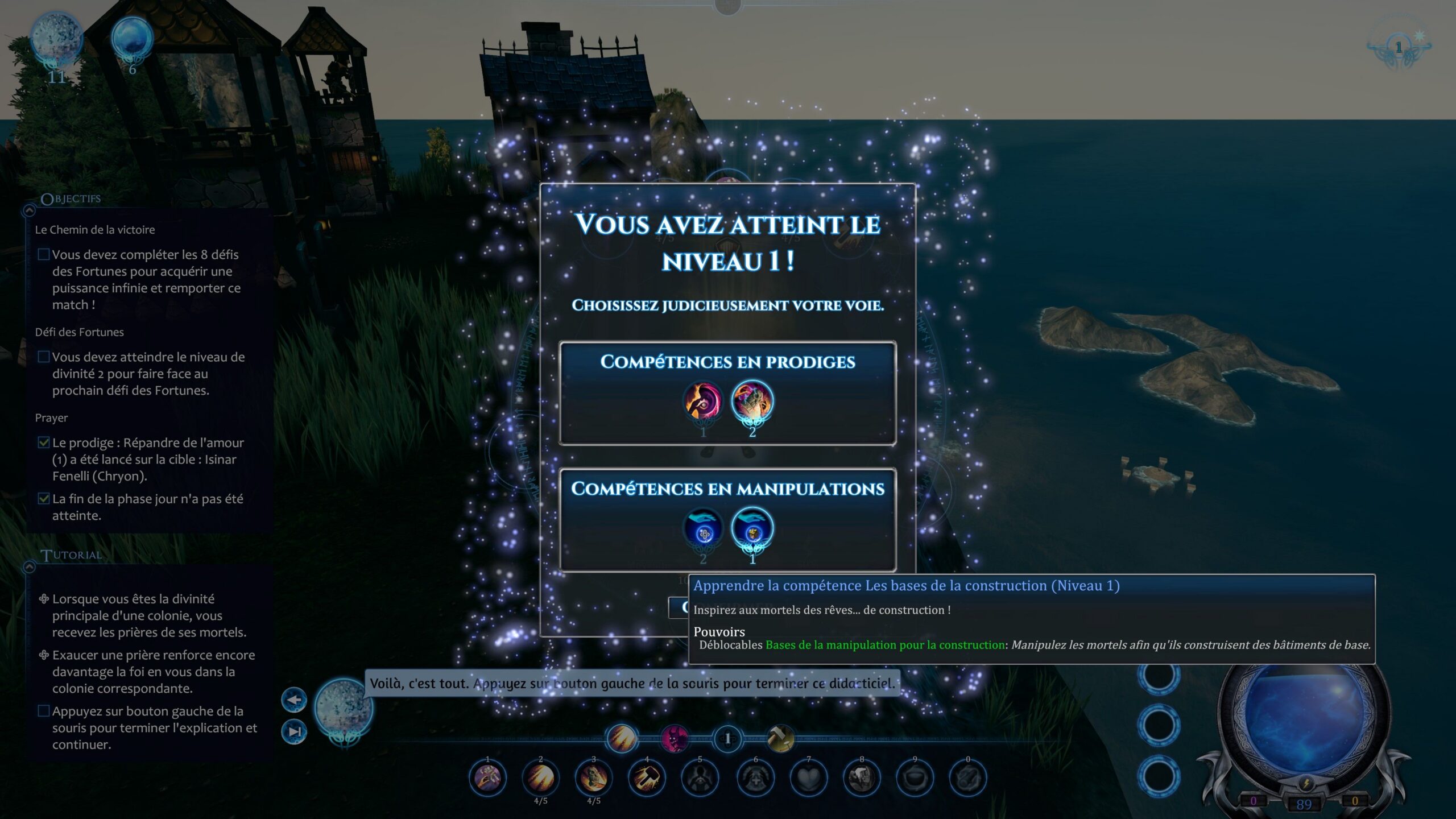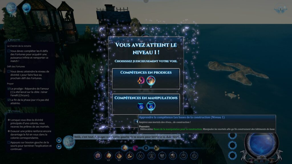 Dès les premiers instants, le jeu ne fait pas de mystère : vous incarnez une jeune et nouvelle divinité qui doit gagner l'adoration de mortels pour accroître sa puissance. La prise en main est relativement intuitive, avec un tutoriel qui explique les bases sans trop s'étendre.