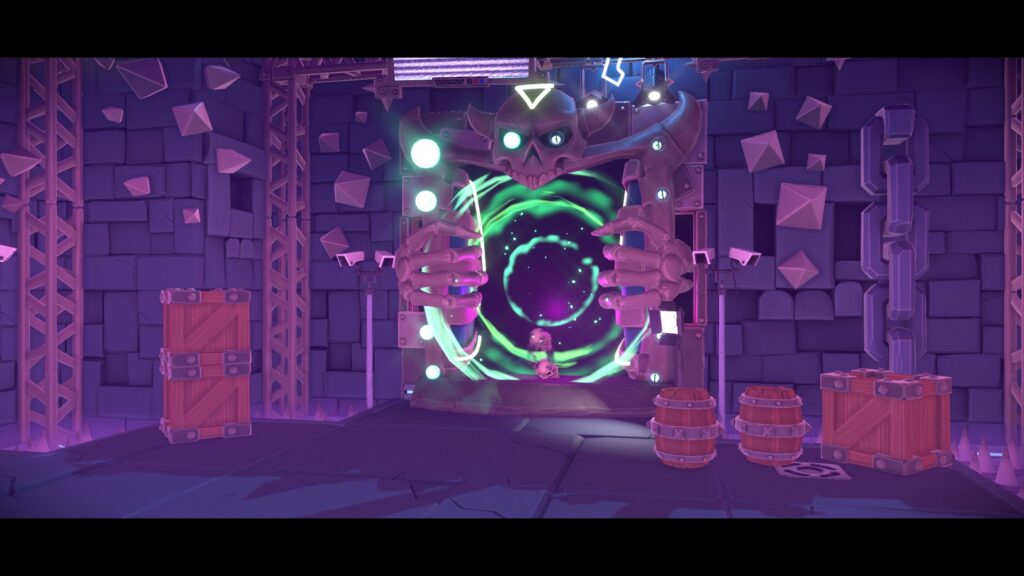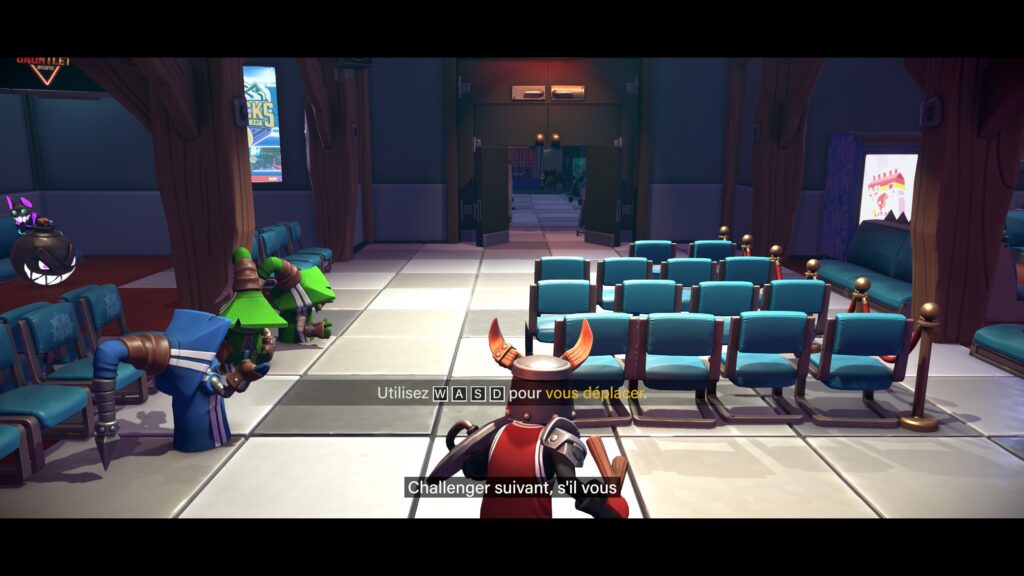 On commence le jeu dans un petit studio télé, qui va nous faire passer l'épreuve du feu pour savoir si on a ce qu'il faut pour survivre dans les donjons. Bon, c'est basique, mais le tutoriel marche assez bien et rend la chose plutôt claire pour les futurs aventuriers. Même, si soyons clair, il n'y a quasiment aucun danger. Ce n'est qu'un échauffement avant la place publique qui va nous présenter les différents personnages qui vont nous suivre dans notre ascension.