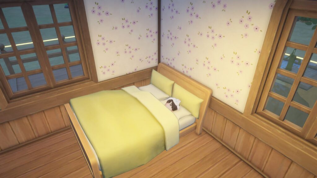 Notre personnage doit dormir chaque nuit, au risque de tomber inanimé au sol. Sans réelle conséquence cependant, il ne peut pas mourir. Au pire, il restera au lit une journée entière. Mais de toute façon, je ne vois pas pourquoi ne pas dormir car c'est le moyen le plus rapide de regagner son endurance, qui se consomme à chaque action de récolte effectuée. On peut sinon manger, ou alors se reposer dans un rocking-chair.