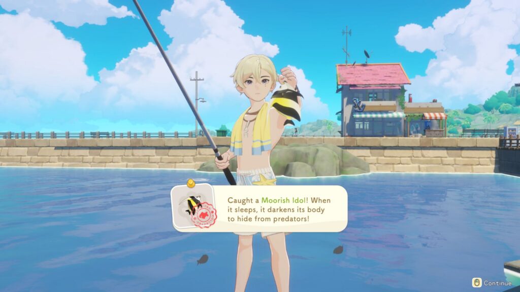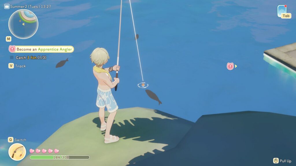 Un autre métier existant est la pêche. Le système est sympa, basé sur des "ombres" qui représentent les futures prises. Il suffit de lancer sa canne, d'attendre quelques secondes, et c'est une touche ! Des appâts existent pour qui voudrait attirer un poisson spécial.