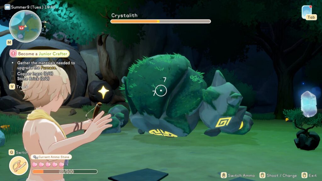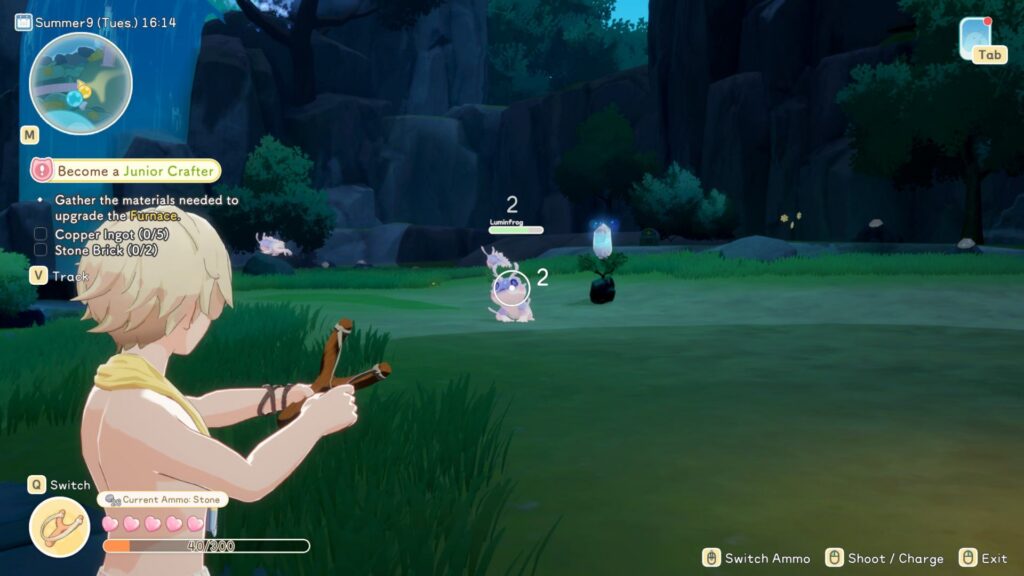 Armé d'un lance-pierre, mon personnage se contente la plupart du temps d'étourdir ses ennemis. J'ai ainsi pu récupérer des lapinous, devenus tout gentils une fois réveillés, et ramenés chez moi !