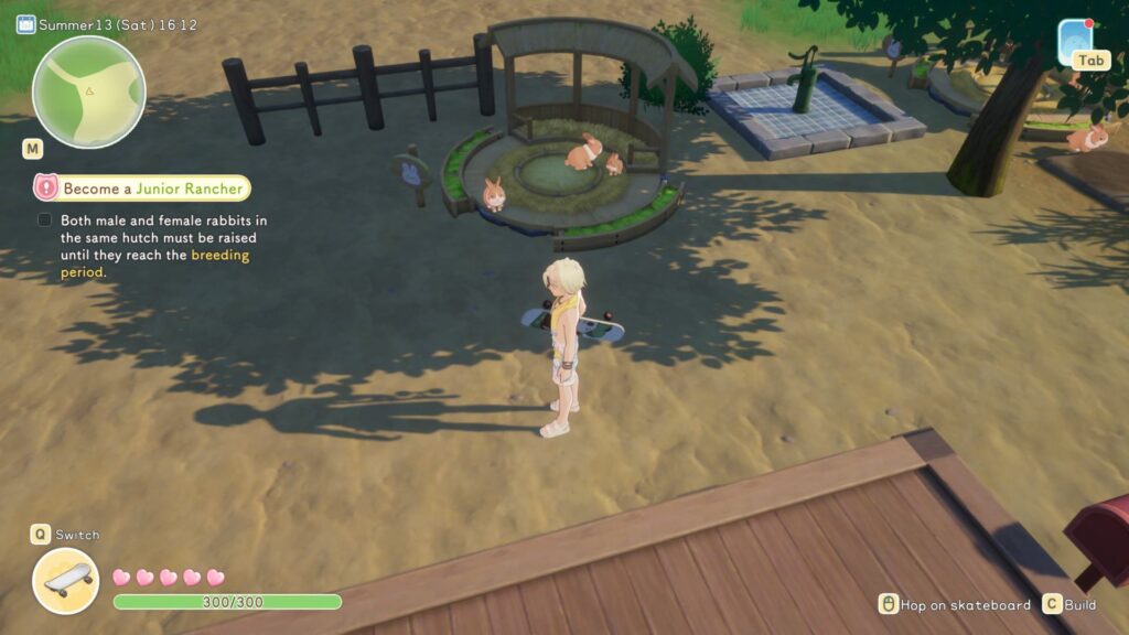 Lors de la présentation gamescom, j'avais voulu rendre visite en premier au mentor pour élever des animaux. Mais le temps nous avait manqué. Je m'y suis précipitée, bien sûr, afin d'accueillir des lapinous et des lapinettes sur mon terrain.