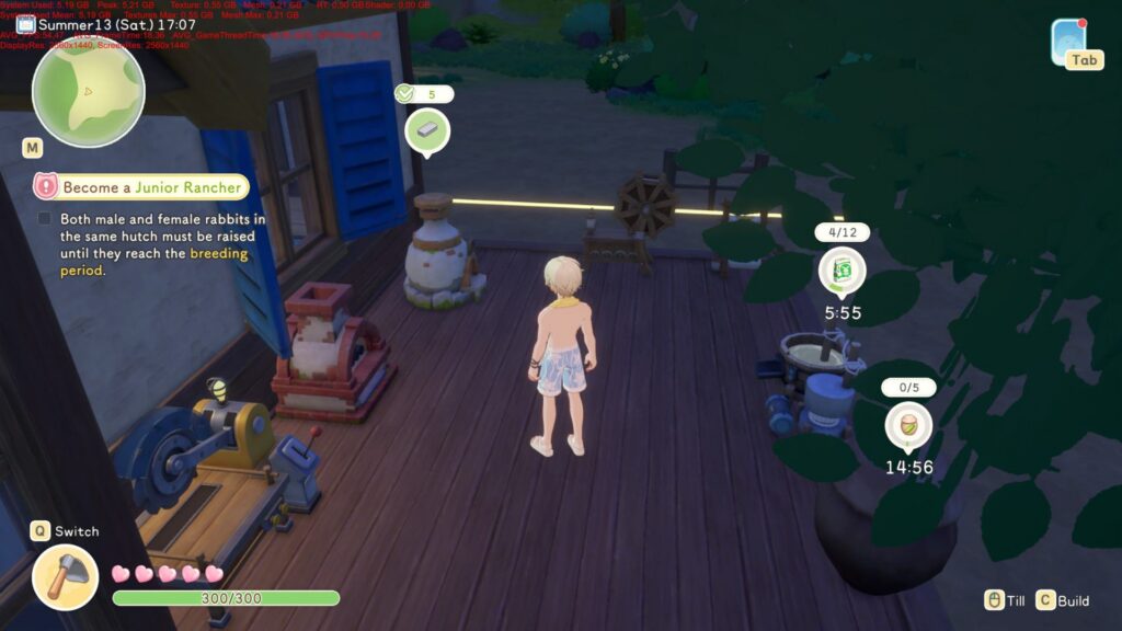 Une fois ma maison agrandie, et mes lapins installés, je me suis lancée dans l'agriculture. Ma dizaine de champs plantés me donne notamment de l'herbe, que les lapins ont l'air de ramasser, car j'en récupère dans l'inventaire de leur maison (avec de la laine et d'autres matériaux). Au début, je ne pouvais pas la transformer encore en nourriture, du coup je la revendais pour acheter leur miam grâce à l'argent récolté.