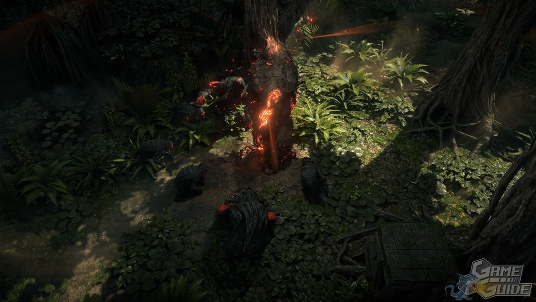 Mais ne croyez pas que les transformations soient le cœur du gameplay du druide, car vous pouvez aussi bien rester sous forme humaine et bénéficier de l'aide de totems à charger de sorts et à déposer sur le terrain et qui aideront à éliminer les ennemis.
