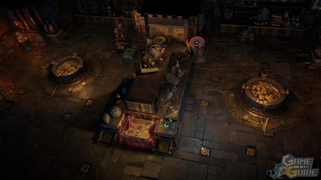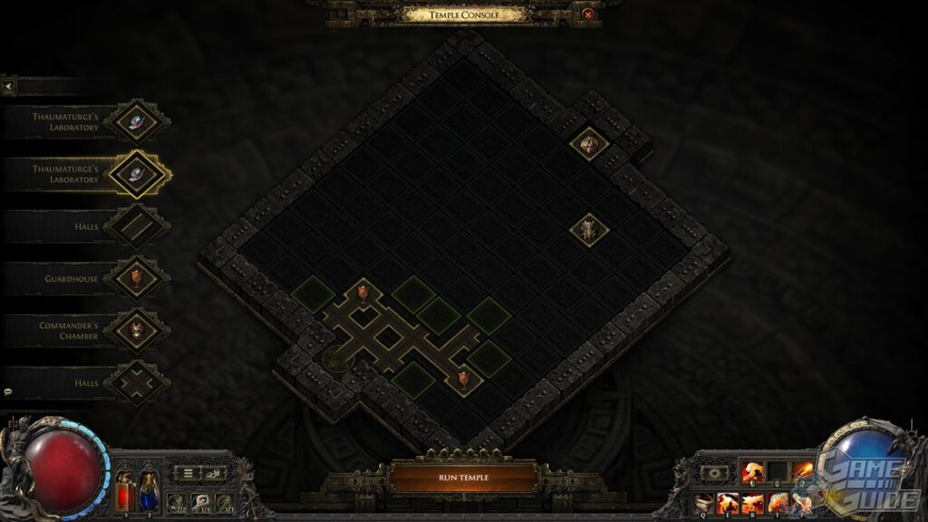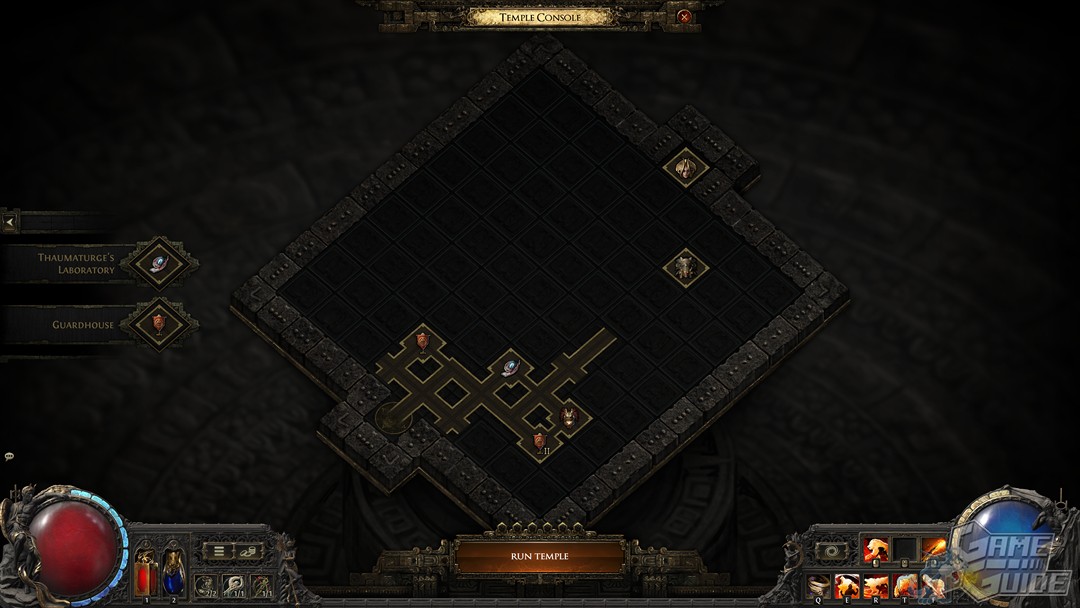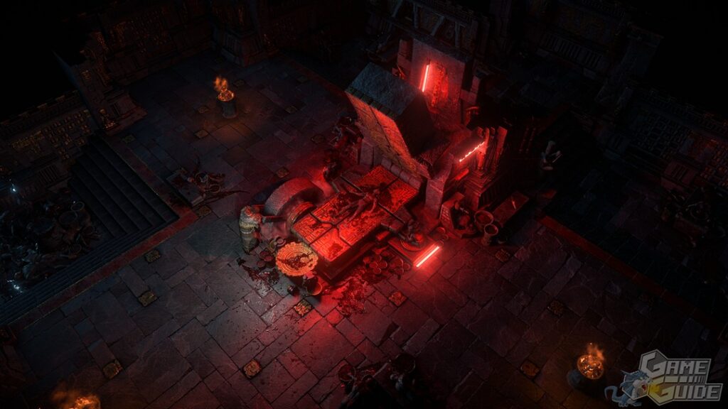 Vous trouverez un temple modulable dans lequel vous agencerez vous-même les pièces avant de les conquérir. Faites un circuit trop simple et vos récompenses seront maigres, mais agencez les pièces avec divers ennemis et mécaniques, de manière à avoir un challenge extrême et vous pourrez récolter de fortes récompenses. Bien évidemment de nombreuses subtilités sont présentes comme la possibilité d'influencer une salle avec un ennemi en en positionnant une autre à côté avec une horde compatible pour augmenter leur niveau, les rendant plus redoutables sous l'influence de leur nouveau chef. Ce sera également un lieu où vous pourrez crafter des équipements maudits, mais également des membres de votre corps qui le seront tout autant en échange, jusqu'à votre mort, de boosts de stats.