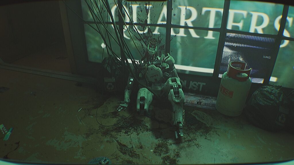 La seconde partie est beaucoup plus anxiogène avec un ennemi invisible qui ne se dévoile qu'avec un module de notre module AOC. On commencera de base avec le module classique qui va surcharger et permettre de combattre les robots. Le second sera plus particulier avec la possibilité de voir par exemple des empreintes sur les claviers... ce qui permet de trouver des codes... le troisième... beaucoup plus tactique nous permet de voir l'ennemi invisible en plus d'ouvrir certaines portes et de pouvoir éblouir en provoquant des lésions irréversibles selon le manuel. Chose que je n'ai étrangement pas eu envie d'essayer.