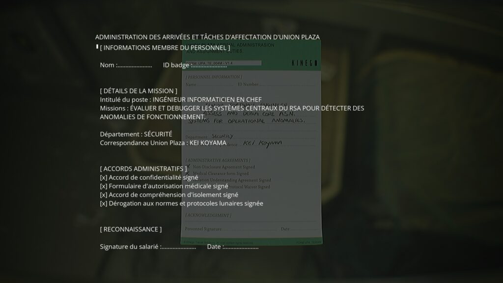 Déjà, une chose très claire : le jeu ne nous prend pas par la main à nous montrer des directions en nous disant quoi faire et en affichant des objectifs. TOUT le jeu nous donnera des indications par moments, avec des messages sur des écrans, des notes écrites, etc... mais rien de plus. Tout comme l'interface qui est totalement absente : on aura juste de temps en temps un menu via notre outil qui se connecte aux panneaux qui s'affichent sur les points d'accès ici et là.