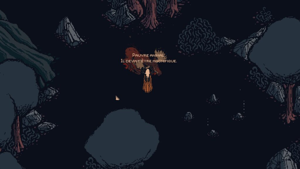 D'autant que s'il y a un point sur lequel Death Howl ne déçoit pas, c'est sur son aspect visuel. On a ici un petit chef-d'œuvre tout en pixel art sombre, jouant avec des noirs abyssaux, des décors lugubres et des silhouettes inquiétantes, le tout dans un folklore scandinave tordu. L'atmosphère est oppressante : la mort et le deuil suivent Ro dans sa quête désespérée, explorant la maternité, la fragilité de la vie et l'acceptation du deuil. C'est brut, mais ça fonctionne à merveille.