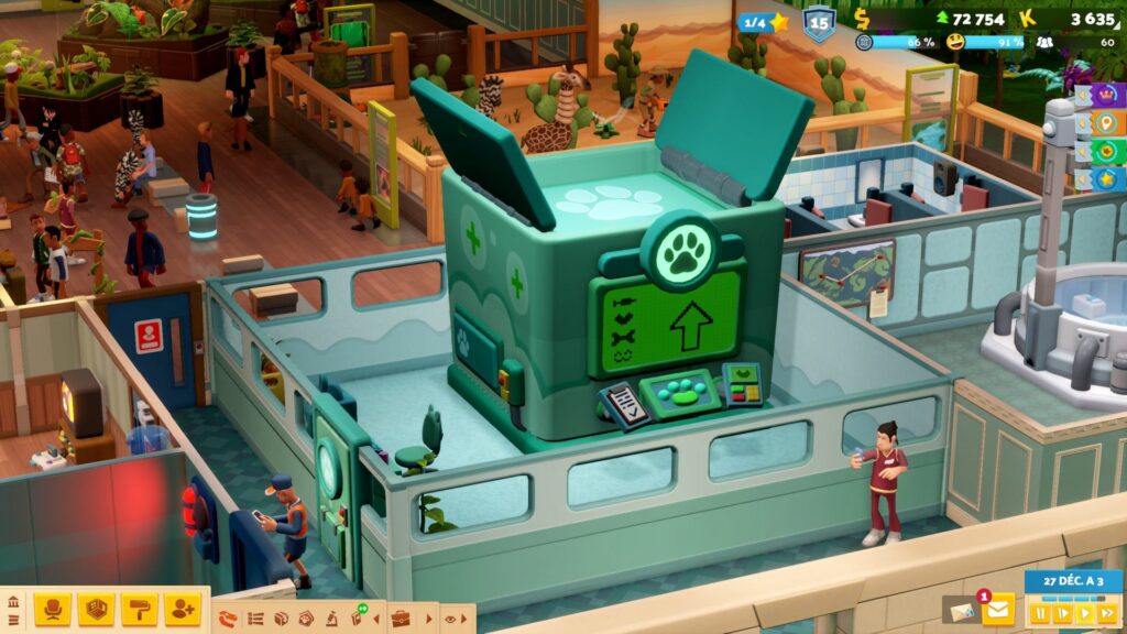 La première est spécifique au DLC, car il est hors de question de déconstruire un être pensant ! Du coup, pour accumuler de la compréhension, ça se passe dans le spa de la nouvelle salle de soins animaliers. Là également, deux machines, le micro spa animalier, et le spa classique.