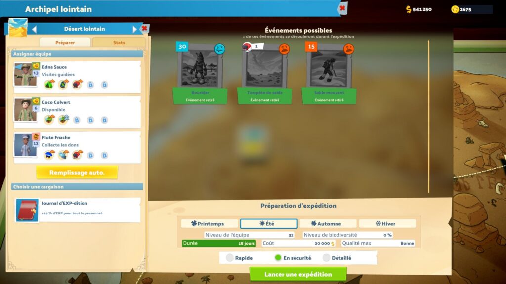 Les expéditions restent, bien sûr, primordiales, le moyen principal d'obtenir des animaux en envoyant certains des employés à l'aventure. Plein de destinations, à travers cinq environnements différents : prairie, grotte, arctique, jungle et désert.