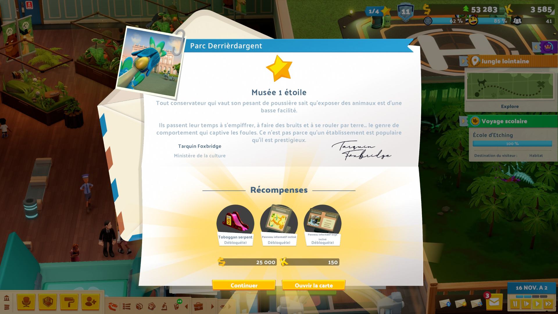 Avant de pouvoir découvrir le DLC qui vient de sortir, j'ai donc dû terminer le tutoriel, et ainsi installer des expositions préhistoriques, spatiales, scientifiques et maritimes. Mais je dois dire que ce DLC met la barre très haut !