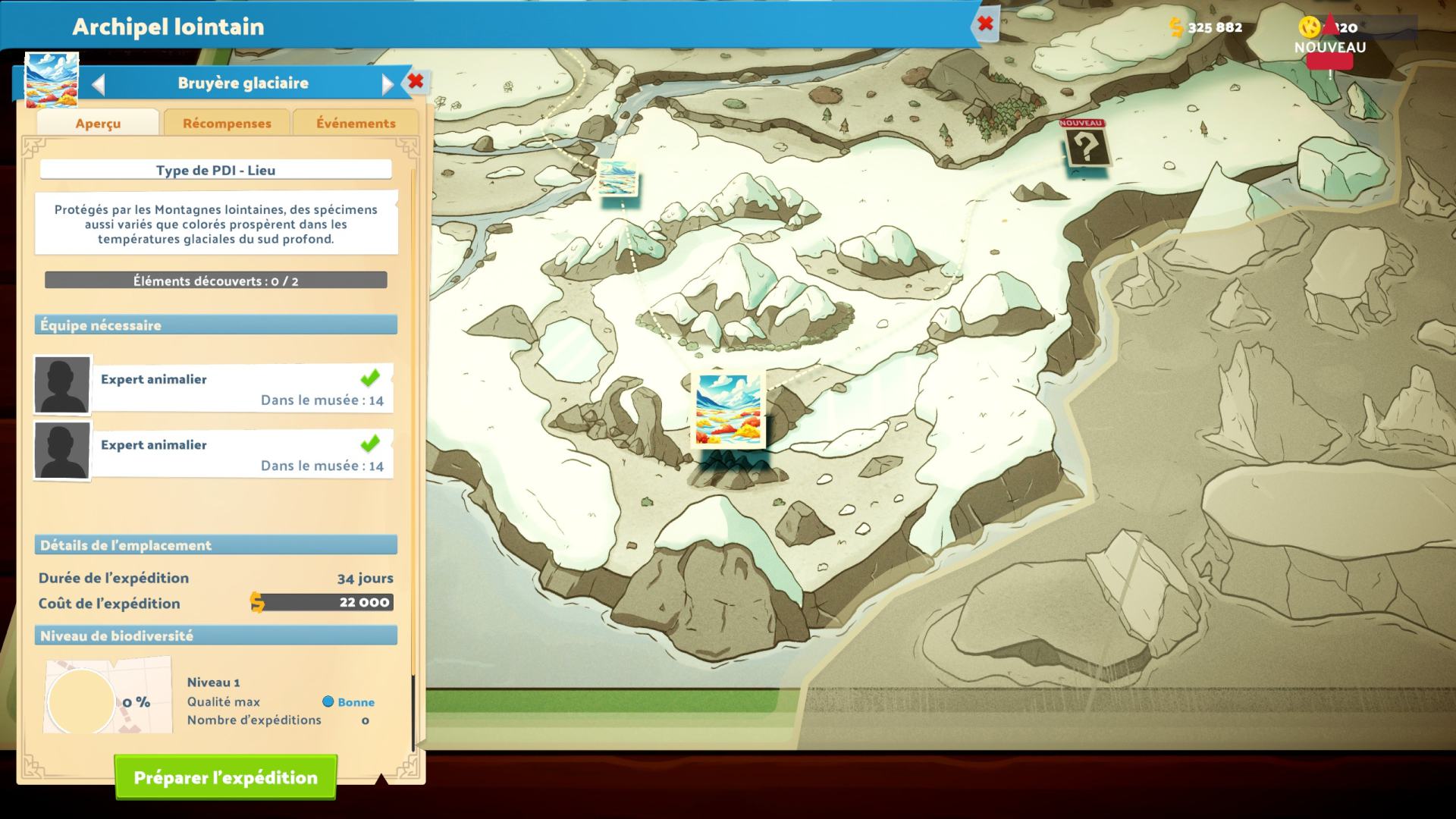 Les expéditions restent, bien sûr, primordiales, le moyen principal d'obtenir des animaux en envoyant certains des employés à l'aventure. Plein de destinations, à travers cinq environnements différents : prairie, grotte, arctique, jungle et désert.