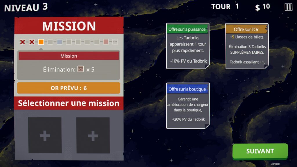 Globalement, on va devoir gérer à la fois notre vie, notre argent dans la boutique avec les missions qui se présentent avec des modificateurs mais qui offrent aussi de puissantes récompenses. Il existe également plusieurs niveaux et plusieurs types d'armes et niveaux d'armes avec bonus associé pour s'éclater un max et changer la monotonie qui pourrait s'installer.