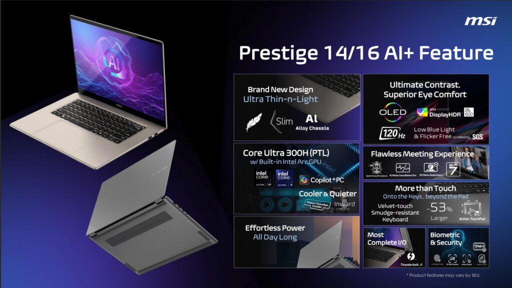 Lors de cette présentation, MSI a mis en avant plusieurs éléments clés, parmi lesquels un écran OLED, un système de refroidissement annoncé comme plus discret, ainsi que des fonctionnalités de sécurité biométrique.