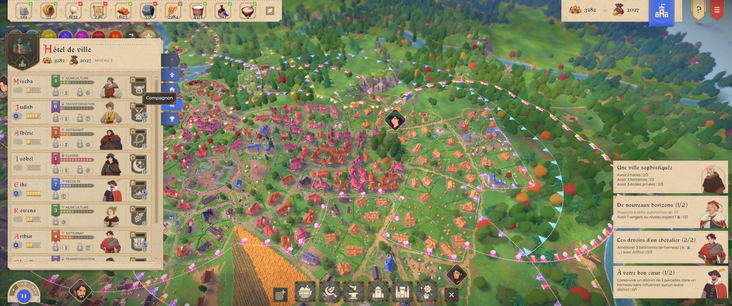 Les compagnons sont l’autre système structurant, ils ont des missions, une histoire, et un rôle direct sur l’économie.