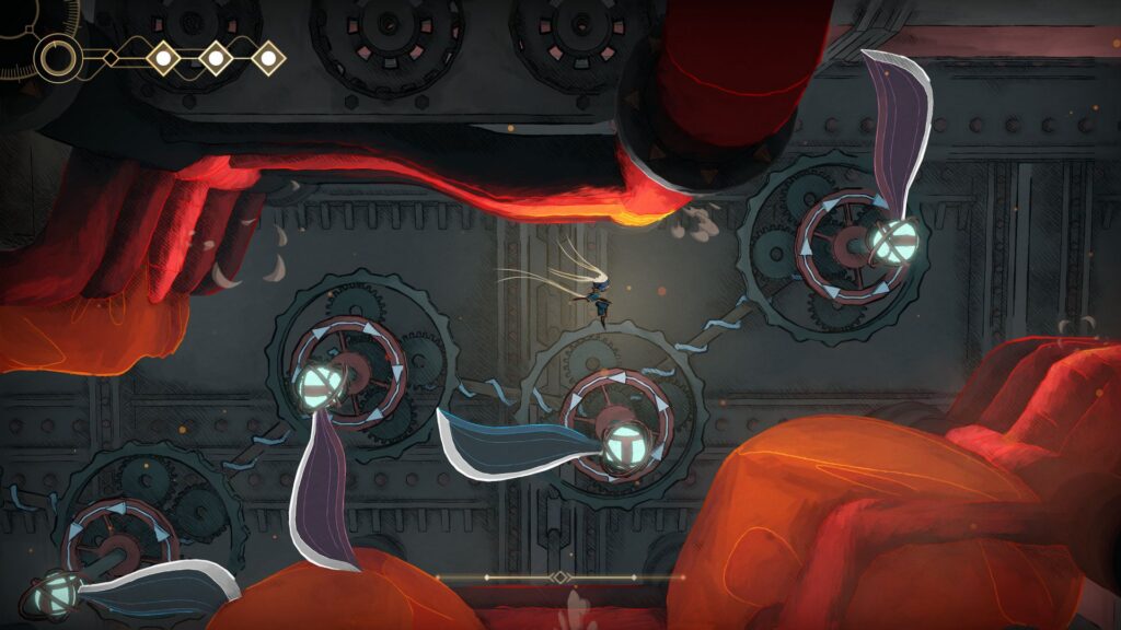 Les combats sont par ailleurs moins fréquents que dans les titres cités au-dessus, même s'ils s'avèrent souvent intenses, demandant à lire et comprendre les patterns de nos ennemis pour mieux les éliminer. L'approche que je préfère, à savoir foncer dans le tas, est ainsi à éviter, sous peine de passer de vie à trépas en quelques secondes. Les phases de plateformes sont le cœur du jeu et demanderont pas mal de dextérité et de précision pour en venir à bout. Désireuse de ne pas créer trop de frustration, l'équipe de développement met toutefois à disposition quelques aides pour rendre l'aventure accessible "au plus grand nombre".