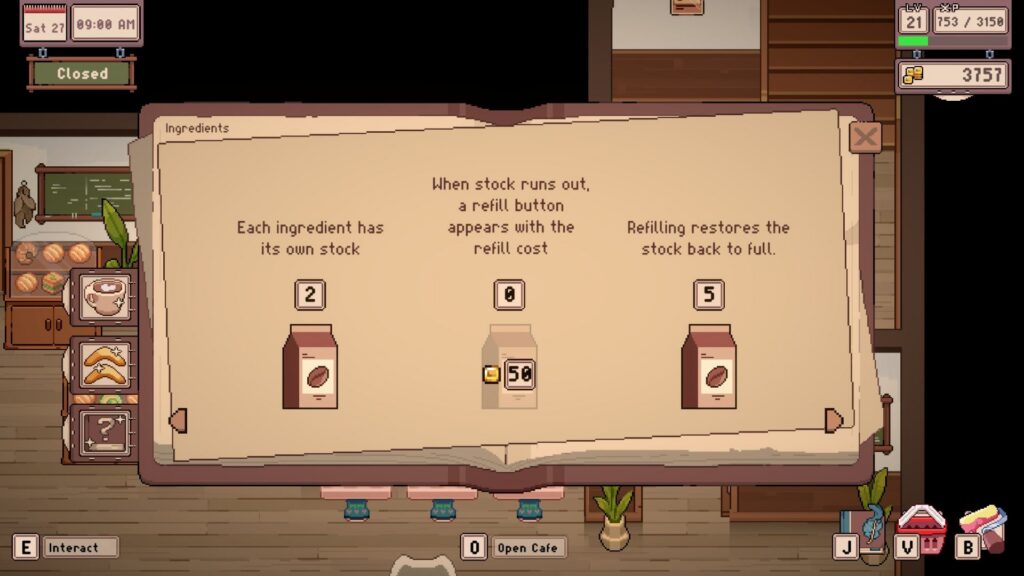 Une transition parfaite pour parler de l'organisation des journées. Le café ouvre tous les jours, de 9 h à 17 h. Notre personnage se réveille avec un article de journal, qui raconte, numéro après numéro, ce qu'il se passe dans la communauté.
