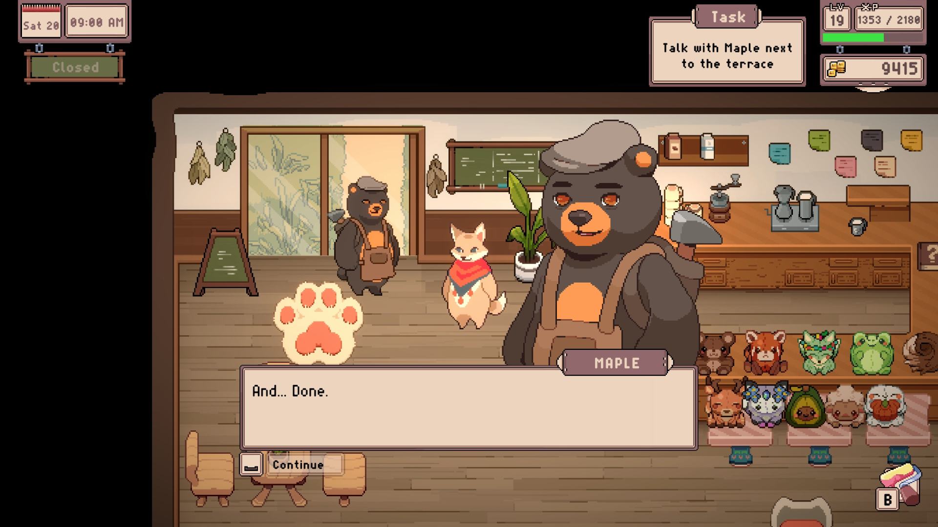 Sur le principe, ce jeu n'est pas fait pour moi. Imaginez plutôt : il consiste à gérer un café... et je n'en bois pas ! Mais il est aussi complétement pour moi, car il est mignon et, en ce moment, c'est exactement ce que je recherche.