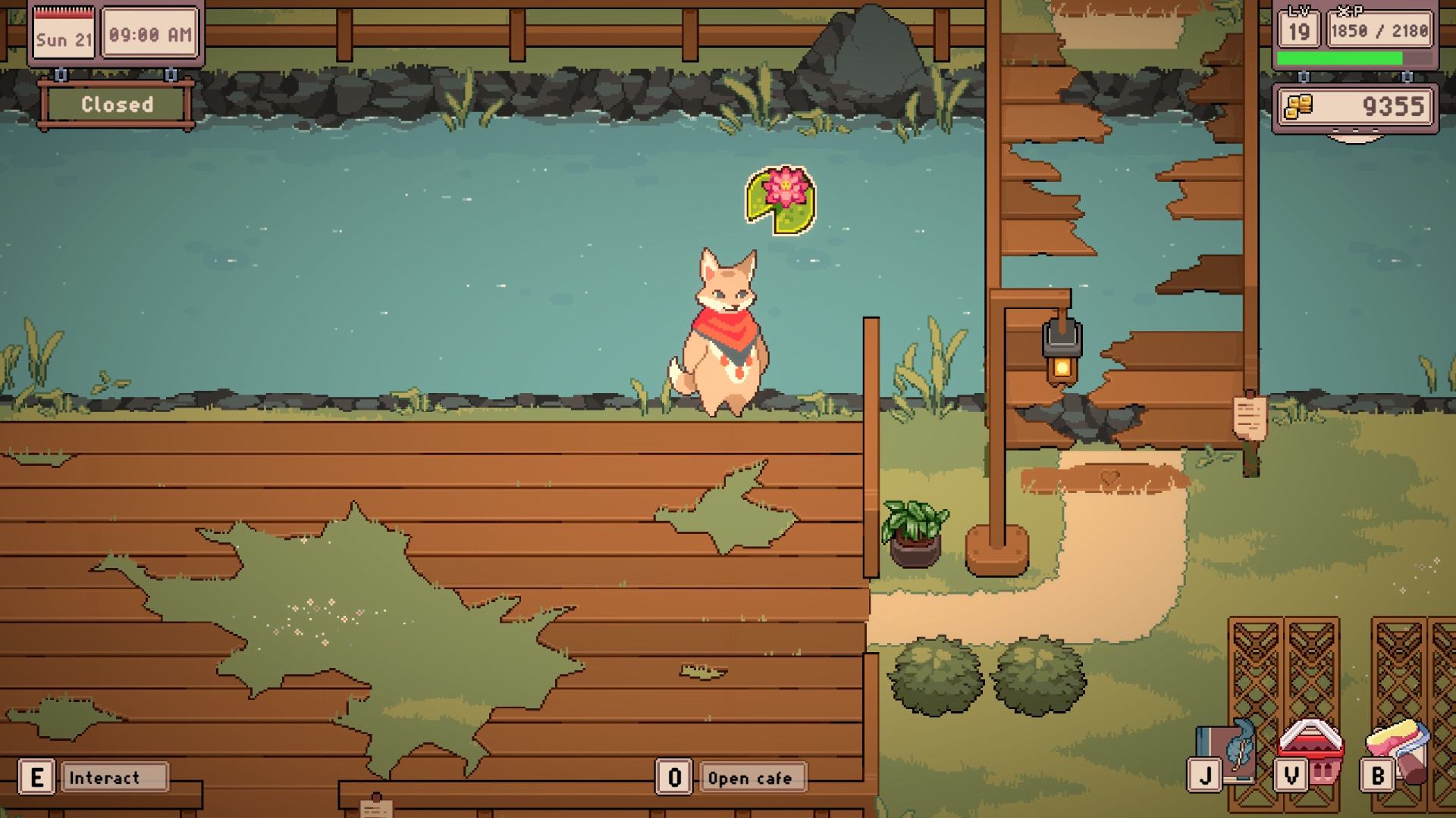 Les clients sont plutôt atypiques, avec une oie qui adore les fleurs, un ours charpentier ou encore une lapine pâtissière. De petits êtres facétieux se promènent dehors, dans le jardin, sur la terrasse ou dans la rivière sur des nénuphars transformés en bateaux. Nénuphars qui, d'ailleurs, donnent quelques points d'expérience en étant ramassés pour donner un but.