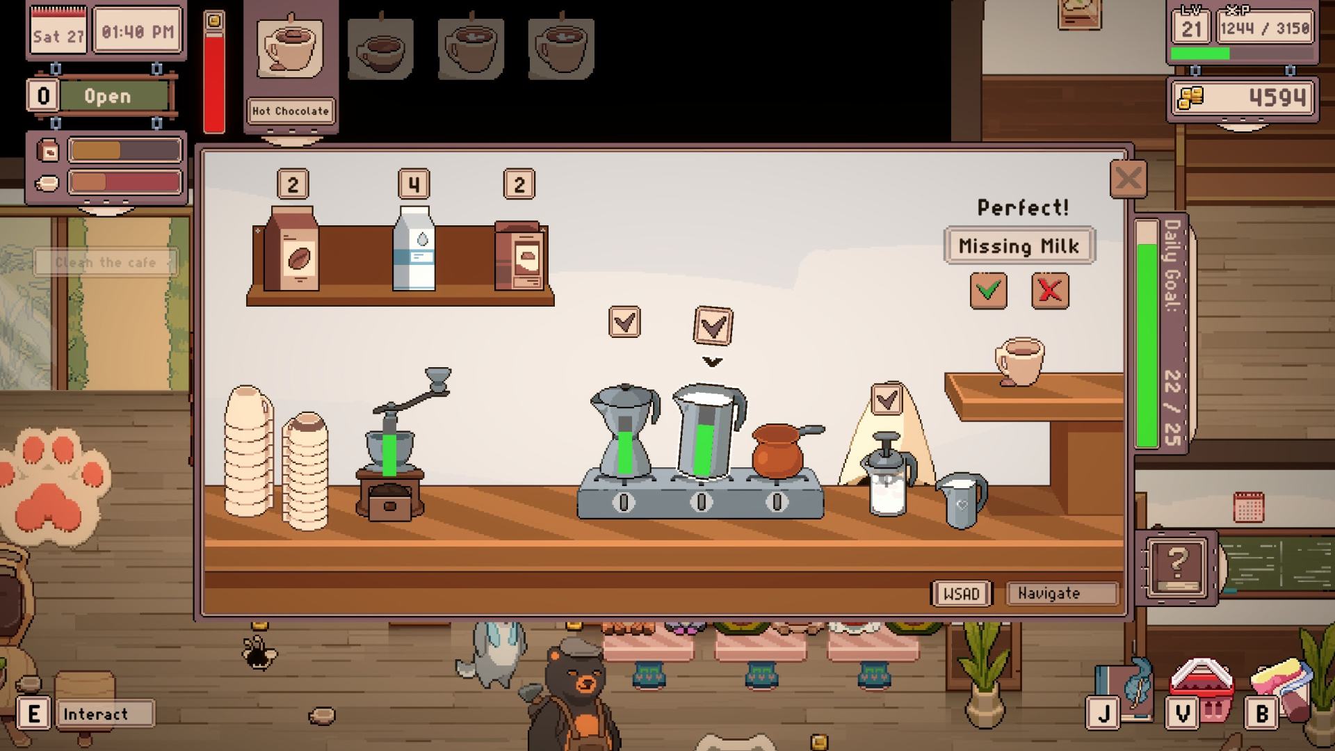 Le seul bémol, me concernant, ce sont les graphismes. Cela fonctionne bien, mais j'ai du mal avec l'aspect trop pixel art. Le café aurait été tellement plus mignon avec des textures plus avancées.