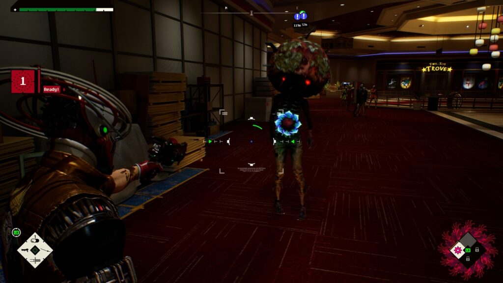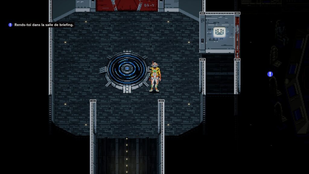 La première chose qui frappe c'est le soin apporté à l'ambiance générale du titre. C'est gore - après tout, la majorité de nos ennemis sont un genre de zombie - mais surtout très travaillé. Si les niveaux que nous explorons correspondent aux standards des jeux actuels, le hub principal, notre vaisseau spatial, s'explore dans un environnements 16bits, tout droit sorti des années 80.
