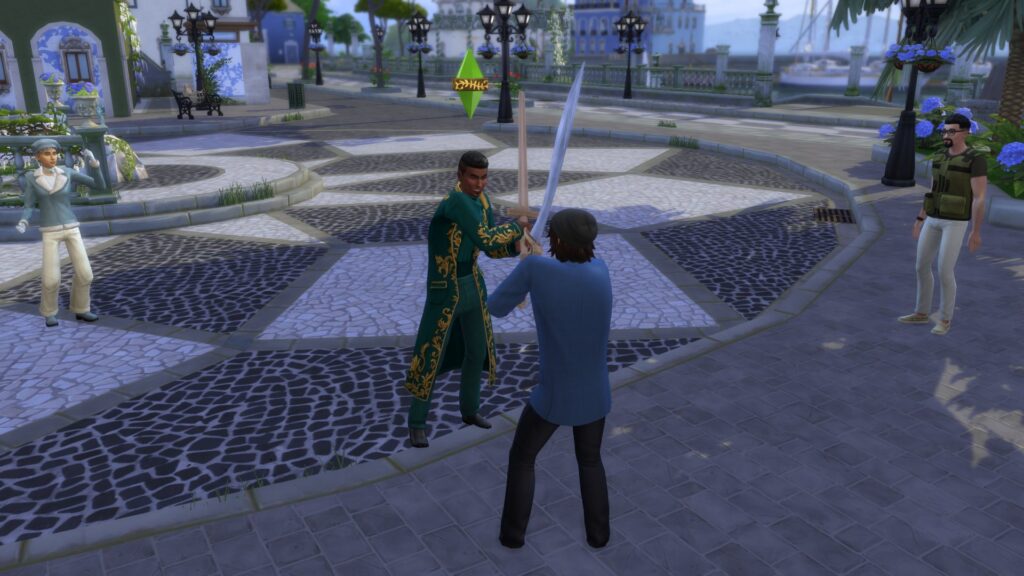 Une grosse partie du gameplay tourne autour de la notion de rivalité et de secrets. Dès qu'un Sim effectue une action répréhensible, cela génère un secret. Je me suis retrouvée embringuée dans toute une histoire. Du jour au lendemain, le Duc Thiago est devenu mon rival, il n'appréciait pas la gueule de Mattéo et ça bloquait sa progression dans la carrière noble.