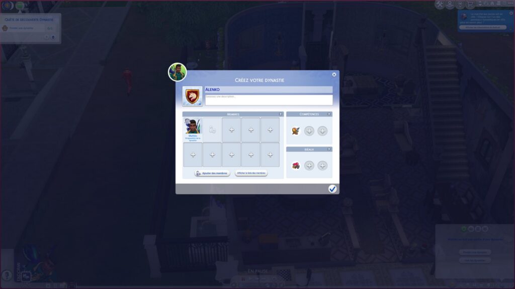 L'évolution passe aussi par sa dynastie. Alors, là, forcément, je suis un peu embêtée car mon Sim vient de naître, il n'a pas d'ami(e)s, et encore moins d'enfants ! Du coup, pas évident de désigner un héritier.