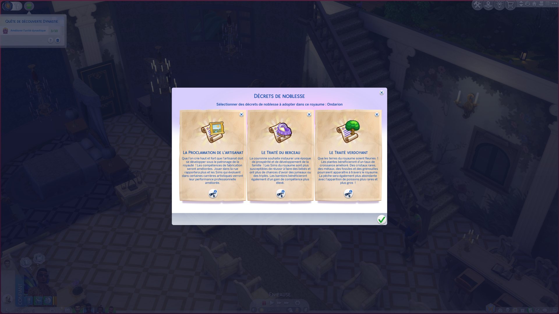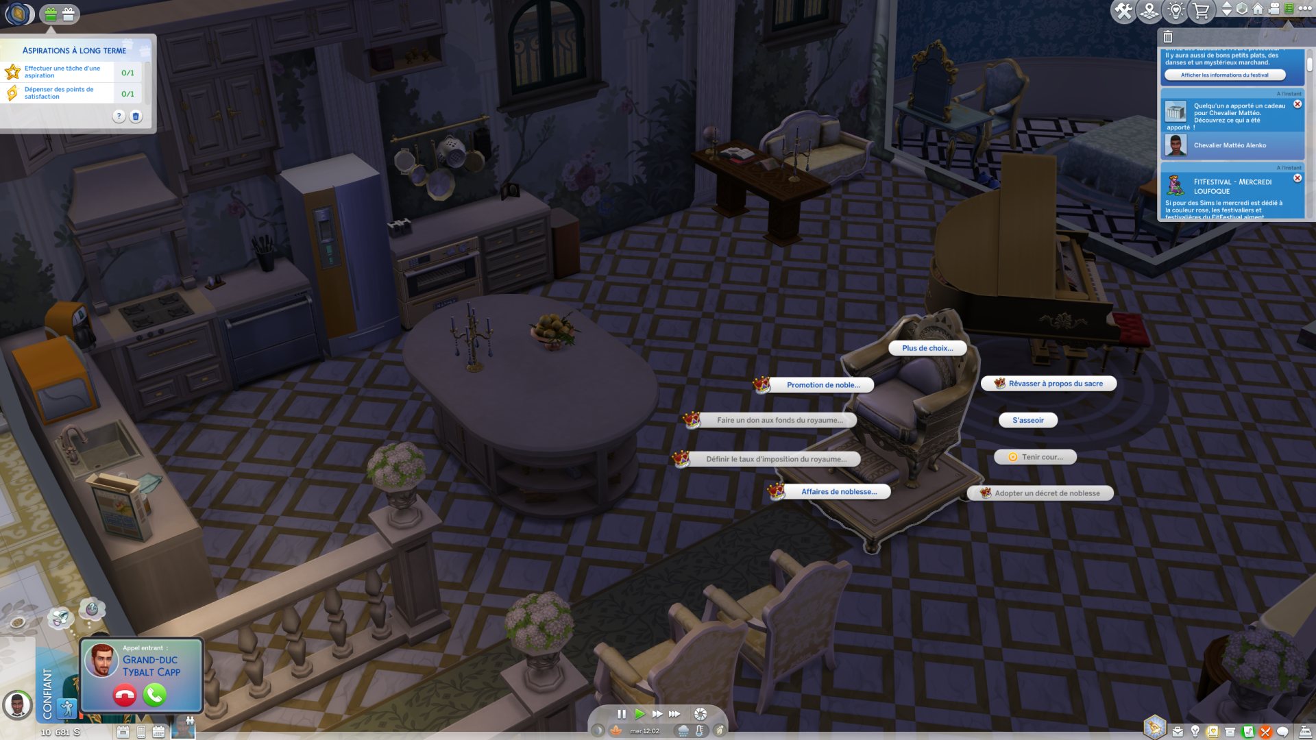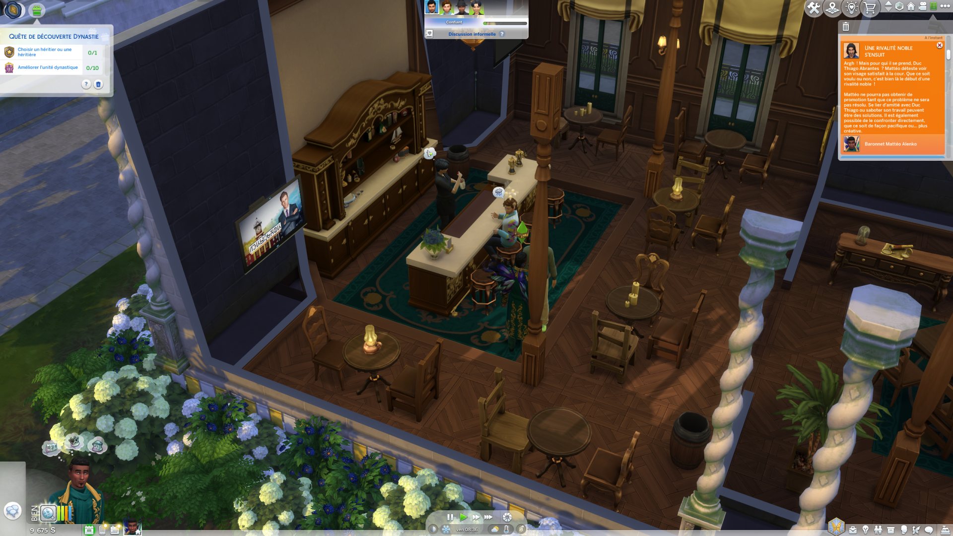 Une grosse partie du gameplay tourne autour de la notion de rivalité et de secrets. Dès qu'un Sim effectue une action répréhensible, cela génère un secret. Je me suis retrouvée embringuée dans toute une histoire. Du jour au lendemain, le Duc Thiago est devenu mon rival, il n'appréciait pas la gueule de Mattéo et ça bloquait sa progression dans la carrière noble.