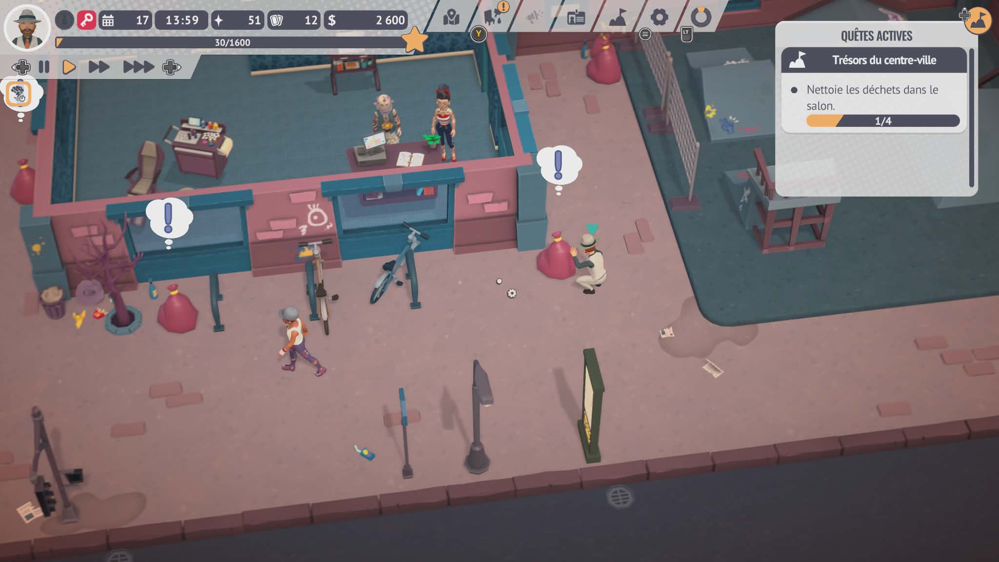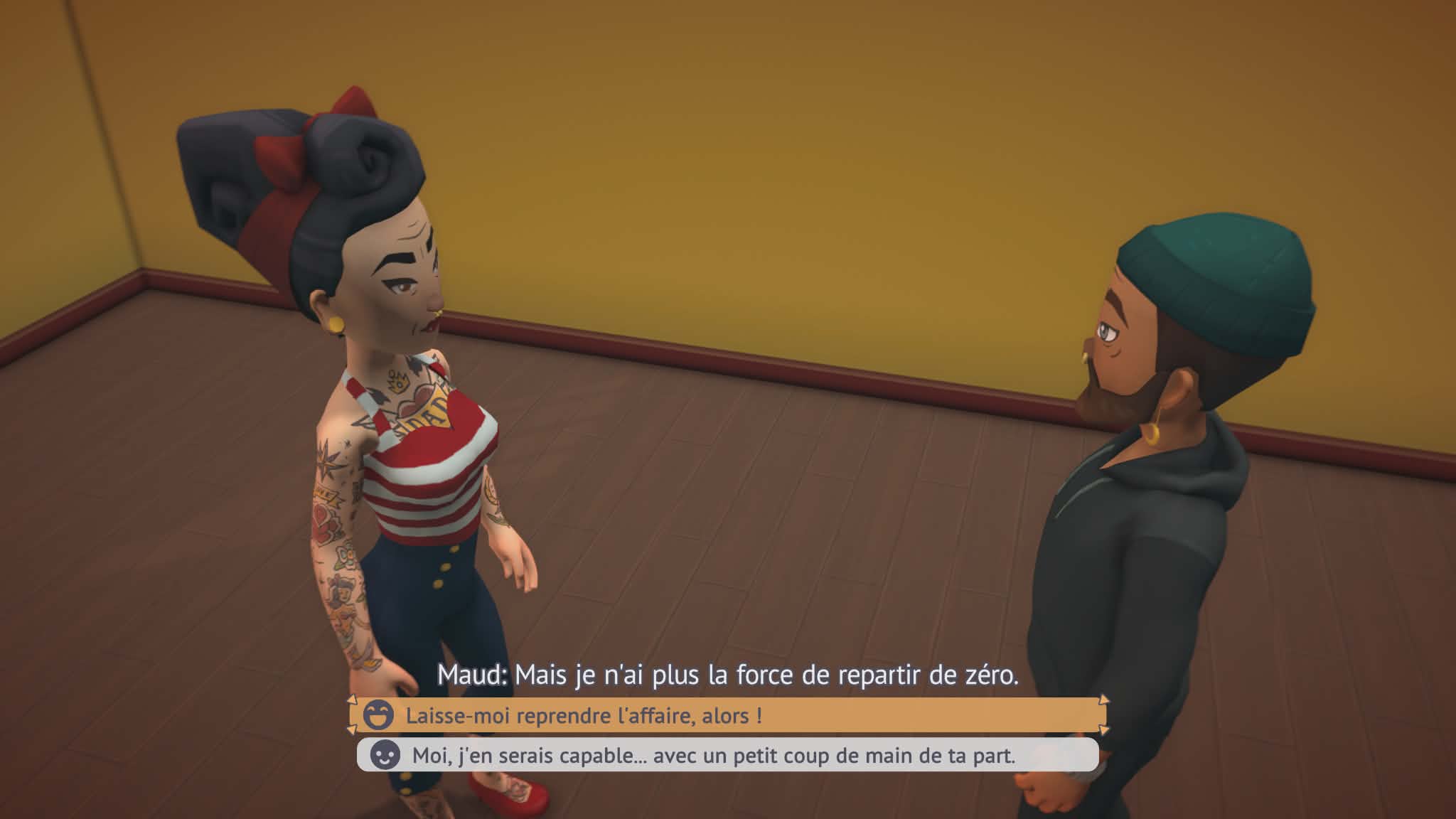 On y incarne un tatoueur qui décide de reprendre le salon de Maud, sa cheffe, alors que celle-ci est sur le point de fermer définitivement. Maud, dépassée par les difficultés financières, n’a plus vraiment d’options, et c’est là que le joueur intervient avec l’idée un peu folle mais ambitieuse de sauver le salon de la fermeture. Ce point de départ, simple mais efficace, donne un véritable sens à la progression : il ne s’agit pas seulement de faire grimper des chiffres, mais de redonner vie à un lieu qui compte. Au fil de l’évolution et du déblocage de nouveaux salons, on rencontre d’autres artistes tatoueurs, chacun avec sa personnalité, son style et son propre parcours. Ces échanges apportent une dimension plus humaine à l’ensemble et donnent le sentiment d’intégrer progressivement une communauté artistique. Le jeu ne transforme pas cette trame en grande fresque scénaristique, mais il s’en sert intelligemment pour donner un peu d’âme à la gestion pure, et ça fonctionne plutôt bien.