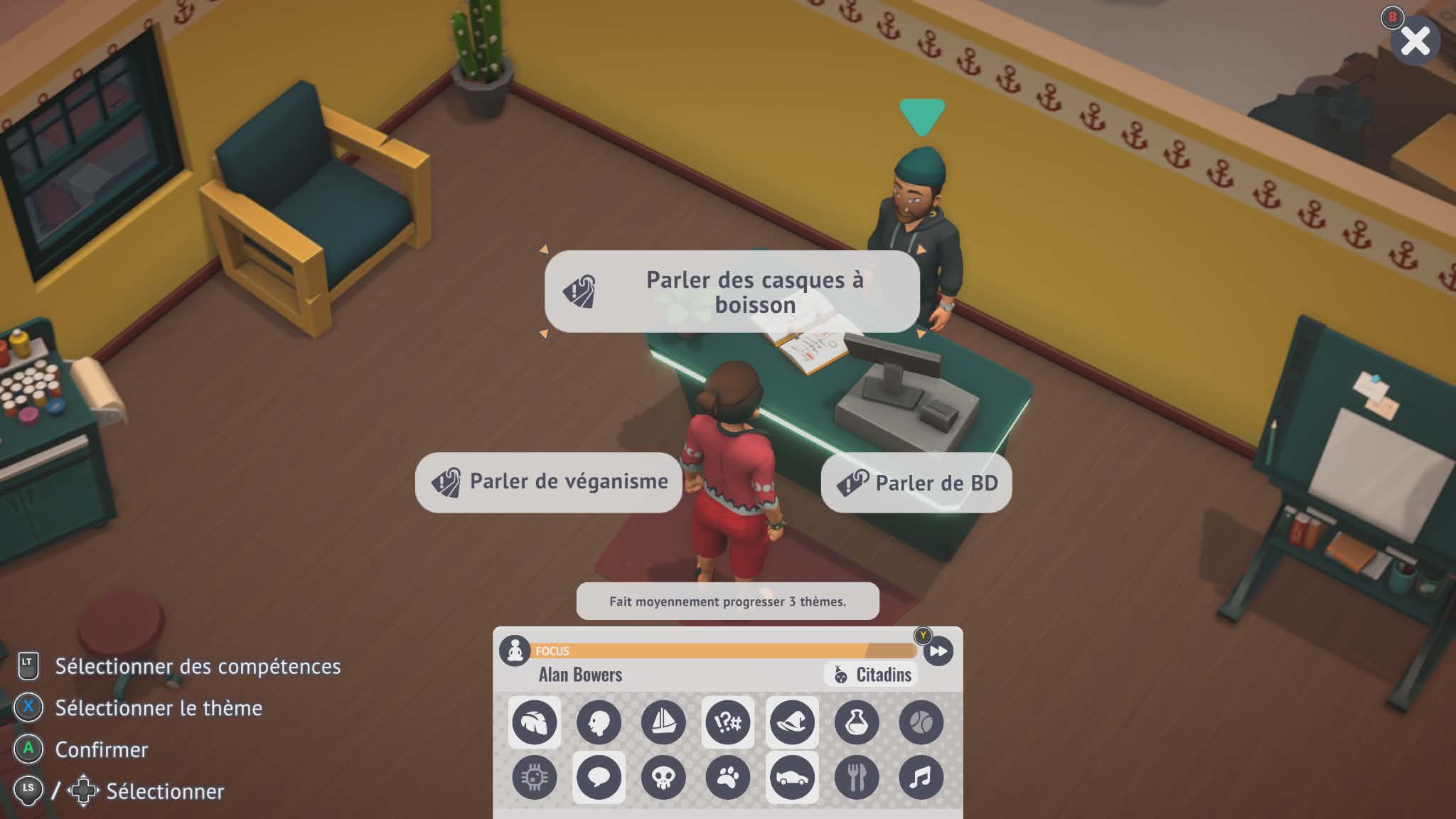 Autre élément intéressant, la possibilité d’embaucher un employé vient enrichir la dimension stratégique. On peut lui confier soit la réalisation des tatouages, soit les consultations avec les clients, ce qui change complètement la dynamique. On ne se contente plus d’exécuter chaque tâche soi-même, on commence à déléguer, à optimiser son organisation, à penser en véritable gestionnaire plutôt qu’en simple artisan. Ce glissement progressif, du tatoueur passionné au chef d’entreprise, donne un peu plus de profondeur au gameplay et renforce la sensation d’évolution sur la durée.