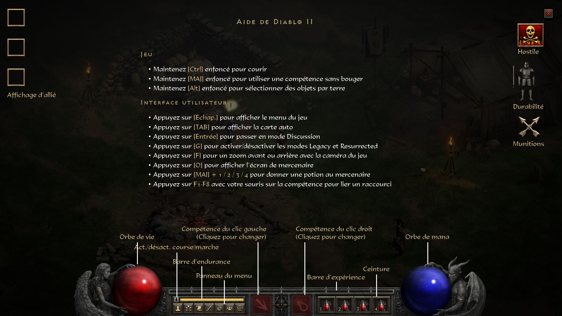 En parlant de stock, la mort dans Diablo 2 est assez punitive : vous vous retrouvez sans le moindre équipement, et la Mort en plus aura prélevé un petit impôt au passage. Ça m'a fait tout drôle la première fois. Pensez à avoir quelques tenues, armes et potions en stock dans votre stockage personnel. Cette fonctionnalité a aussi eu droit à un petit lifting : des onglets dédiés aux gemmes et runes, et de nouveaux onglets de coffre partagé.