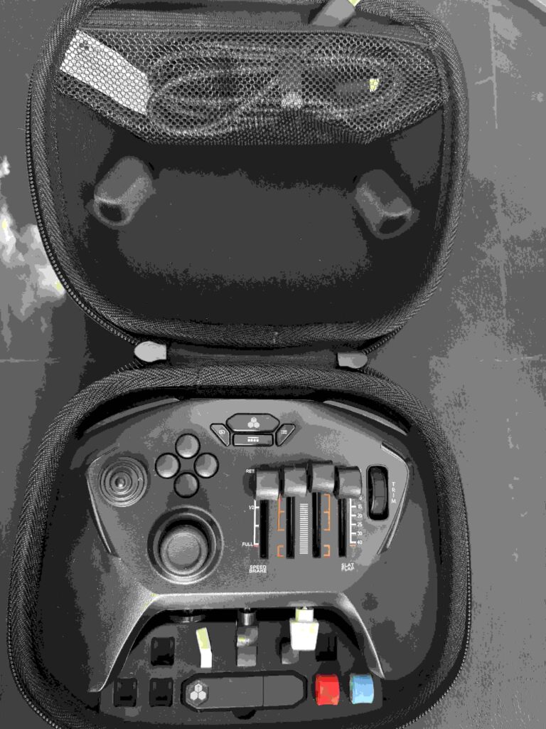 Déjà la manette est vraiment très bien équilibrée dans son style, elle pèse un poids ni trop léger ni trop lourd pour moi. On doit prendre bien évidemment ses marques. Mais une fois que c'est fait, c'est le bonheur absolu. On gère son appareil avec une précision absolue sous tous les angles, que ce soit pour le décollage, la gestion de sa vitesse, son assiette, tout est vraiment parfait...