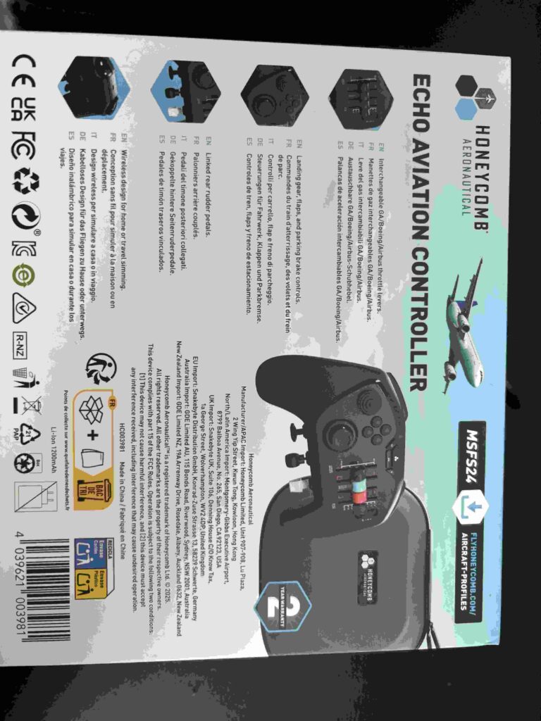 Bon, notons qu'au dos de la boite, on nous donne un petit lien pour télécharger le profil pour Microsoft Flight Simulator 2024. Même si au niveau des réglages... j'ai passé facilement de très nombreuses heures à me dépatouiller avec ça, pour finalement regarder la sagesse ancestrale de mes an... ouais en fait des youtubeurs qui se sont éclatés à le faire et à donner des tutos !