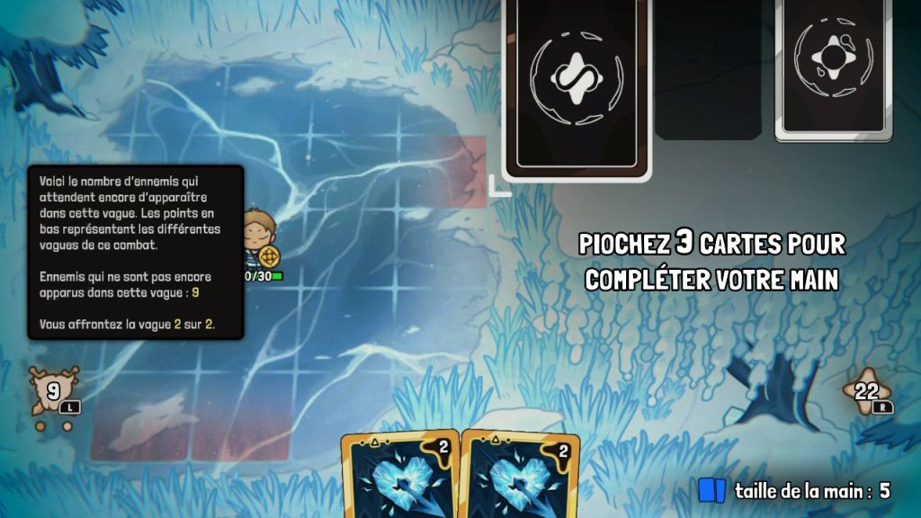 Comme à chaque tour, le joueur doit refaire sa main pour atteindre le nombre maximal et effectuer le choix systématique de la source des cartes qu'il pioche pour résoudre son prochain casse-tête. Le jeu introduit un système de défausse à chaque tour dans lequel le joueur peut défausser n'importe quelle carte de sa main sans limite pour faire cycler son jeu. Petit défaut, il n'est pas possible en cours de partie de savoir les cartes qui nous restent dans le deck. Autant pour le premier deck cela peut être compréhensible étant donné que les cartes sont "infinies", mais les deux autres étant limitées c'est une information qu'il aurait été intéressante de savoir. "La connaissance est le pouvoir."