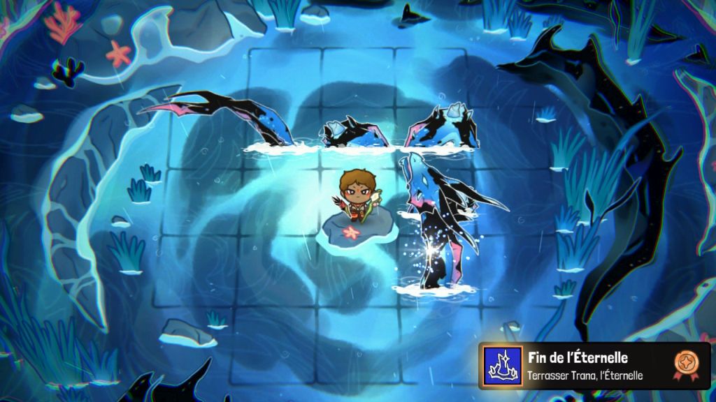 La menace ne vient pas d'une seule direction, mais arrive vers vous comme une marée inéluctable. Chaque vague est indiquée à l'écran à cette différence que vous ne savez pas le type d'ennemi qu'il faut affronter. C'est possiblement un peu devinable car les monstres sont découpés par région et, à force d'effectuer des runs, vous commencez à connaître un peu le type de créatures qui se promènent. Toutefois, cette logique spatiale où votre avatar est au centre de la grille transforme le jeu en un vrai puzzle où il faudra anticiper plusieurs tours à l'avance, sans quoi votre partie se soldera par un Game Over.