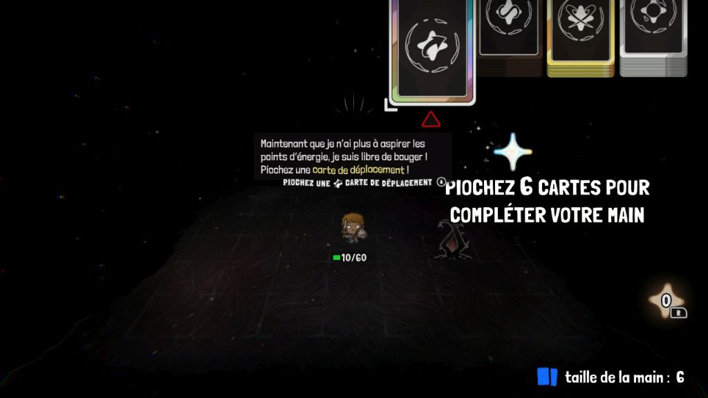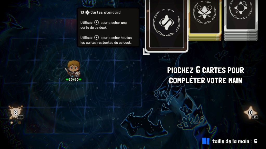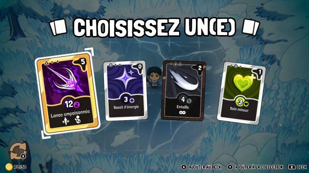 La mécanique du placement du personnage au centre d'une grille où il ne peut pas bouger est déjà quelque chose d'original, mais le studio a aussi introduit un jeu de deckbuilding divisé en trois paquets distincts. Le premier rassemble principalement les attaques de base de l'âme contrôlée et sont des cartes qui reviennent indéfiniment pendant le combat. Les deux autres sont des decks contenant des cartes "One Shot" d'attaque ou de support tels que le soin ou le gain d'énergie.