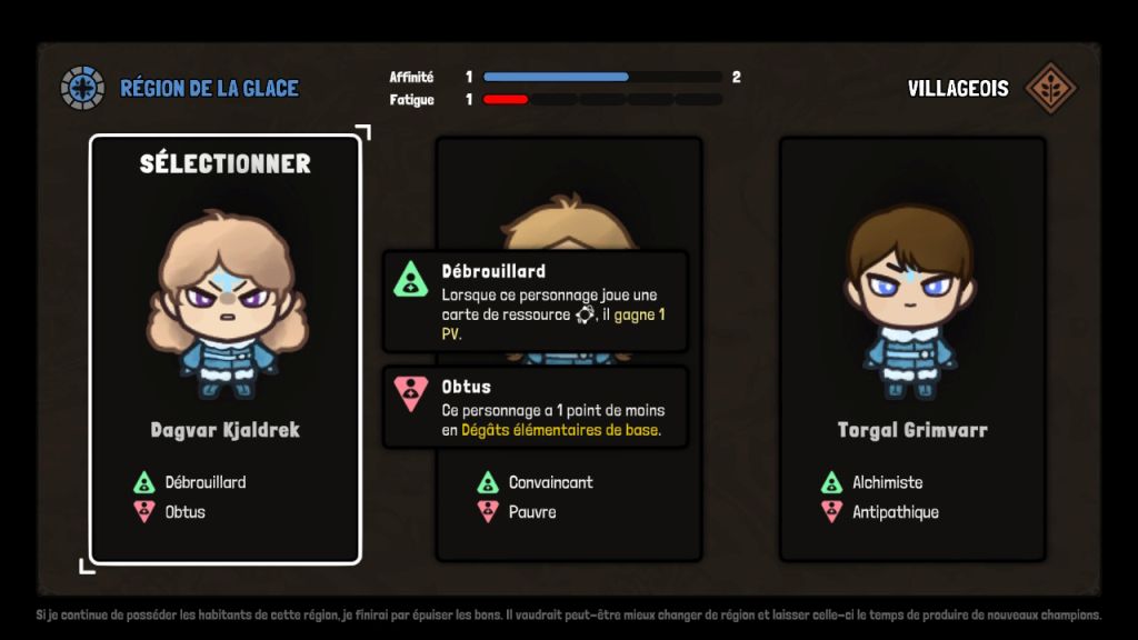 Comme expliqué précédemment, le joueur prend possession d'un avatar avec un bonus et un malus de départ tout en choisissant un deck de jeu parmi ceux débloqués (trois par biome). Ce choix de départ permet de rendre bien plus aléatoires les runs en permettant une re jouabilité certaine du titre.