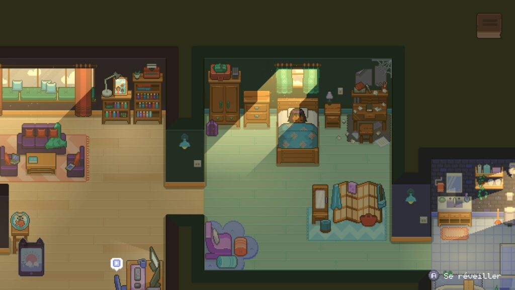 Visuellement, Fishbowl se veut très doux à l'œil, souvent teinté de surréalisme dans les scènes de rêve. Les tons peuvent basculer du pastel chaleureux à des noirs plus profonds en fonction de ce que ressent notre protagoniste. Je me dois également de mentionner le rythme, qui pourra frustrer certains d'entre vous. Le titre s'articule autour de mini-rituel et ces journées sont répétitives par essence. A titre personnel, je jouais à ce dernier par petites sessions de 45 minutes à 1 heure, sans trop ressentir cet aspect redondant, et aidé par un récit qui avance au compte-goutte, mais qui ne fait jamais de sur-place.