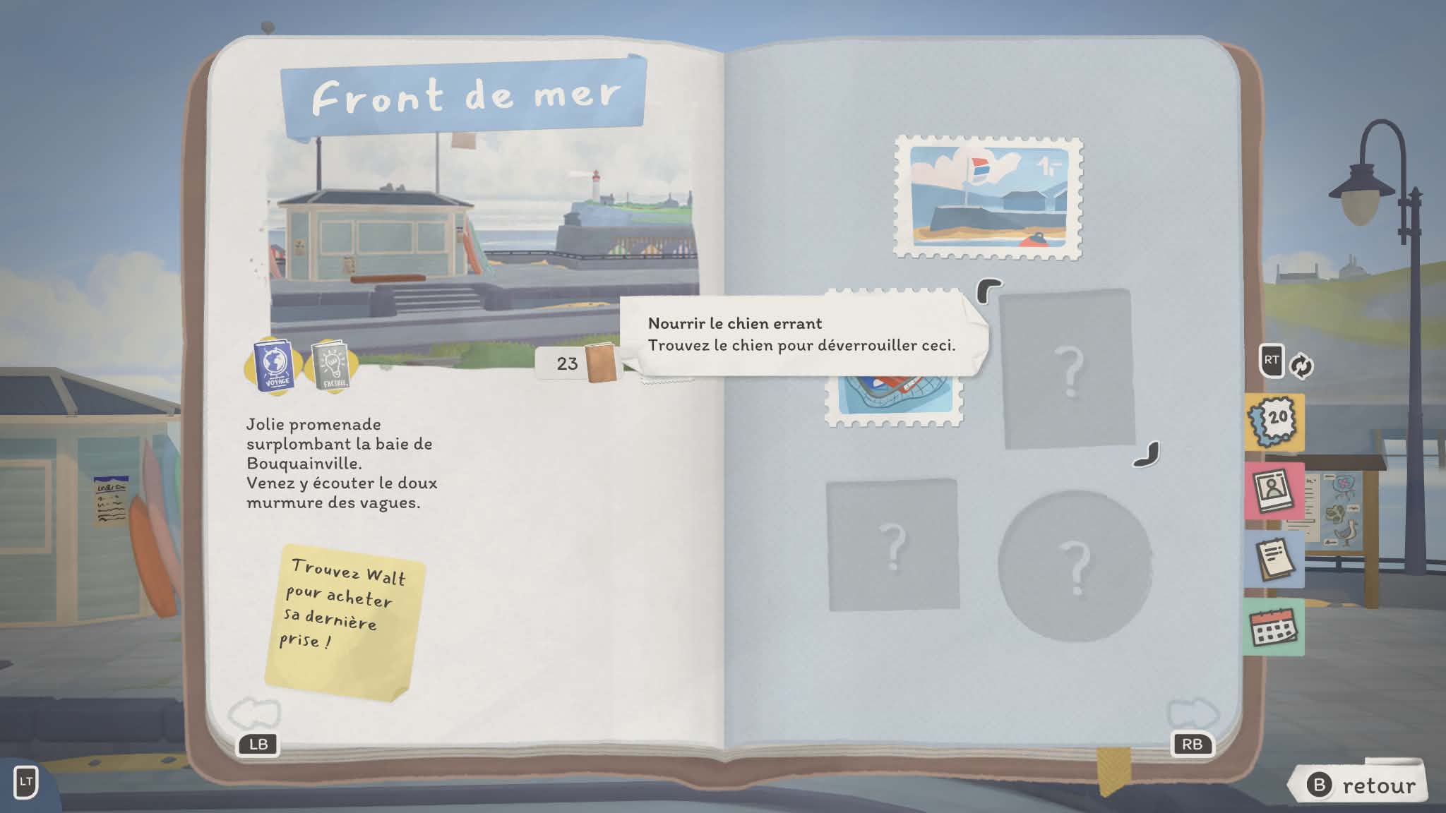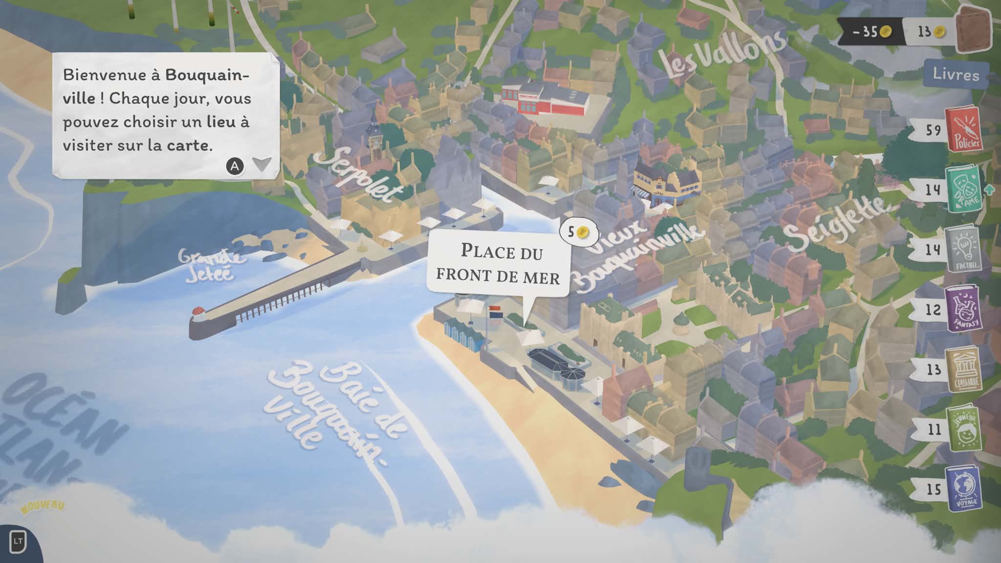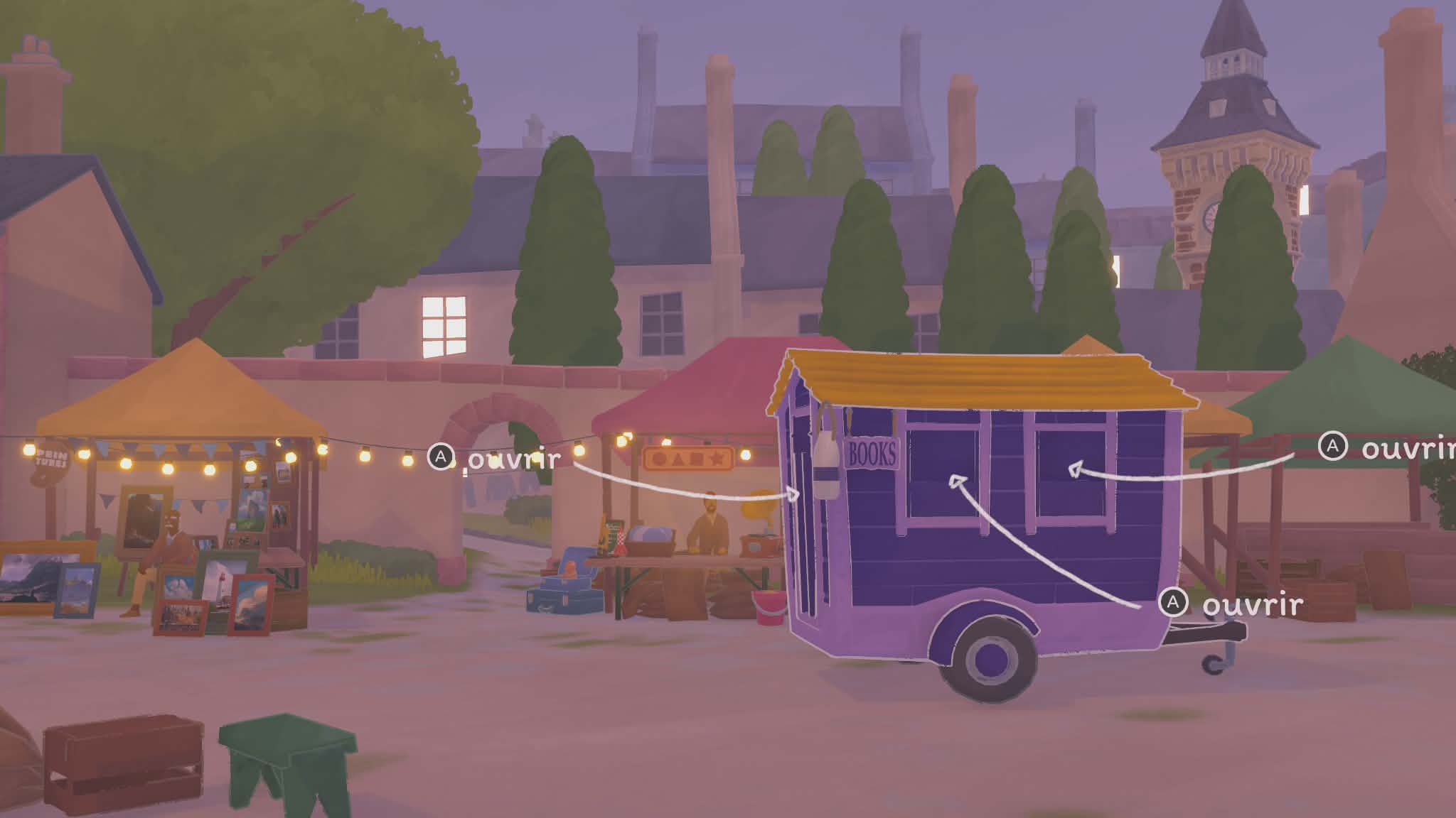 Là où le jeu devient particulièrement intéressant, c’est dans sa structure. Votre librairie n’est pas fixe : vous voyagez de lieu en lieu, chacun ayant sa propre ambiance, ses personnages et ses petites histoires. Chaque endroit propose son lot de quêtes secondaires et de dialogues, donnant vie à cet univers. On ne se contente pas de vendre des livres : on apprend à connaître les habitués, on découvre leurs goûts, leurs habitudes… et parfois même leurs petites histoires personnelles. Ce côté narratif léger mais présent renforce l’attachement au jeu. On a envie de revenir, de voir ce que deviennent les personnages, de continuer à faire vivre cette petite communauté.