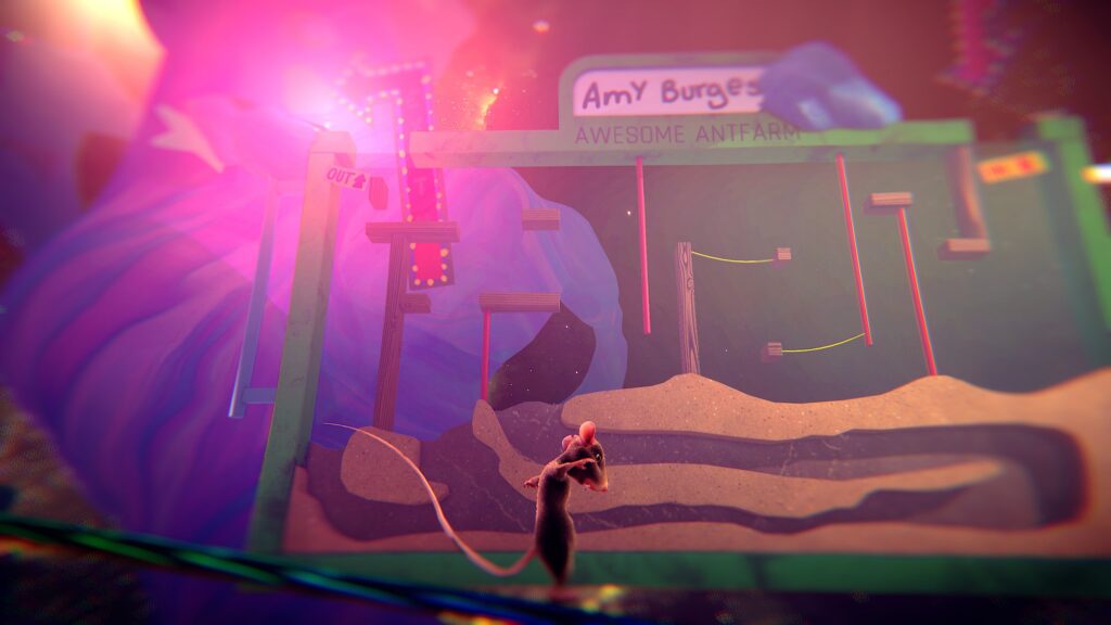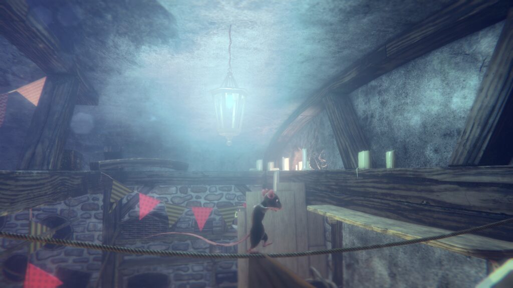 Commençons par le positif si vous le voulez bien. L'idée de base est excellente, et je suis le jeu depuis plusieurs mois pour cette raison. On joue à l'échelle d'un rat dans un intérieur humain, le concept est chouette et très bien exploité : une simple boîte de céréales fait l'effet d'une falaise pour notre rongeur, un siphon de lavabo se transforme en une grotte inquiétante, et le moindre mobilier devient ainsi une aventure verticale à part entière. Les différents environnements qu'on traverse ont une vraie personnalité, la progression est bien dosée, et on sent que le level design a été pensé avec soin.