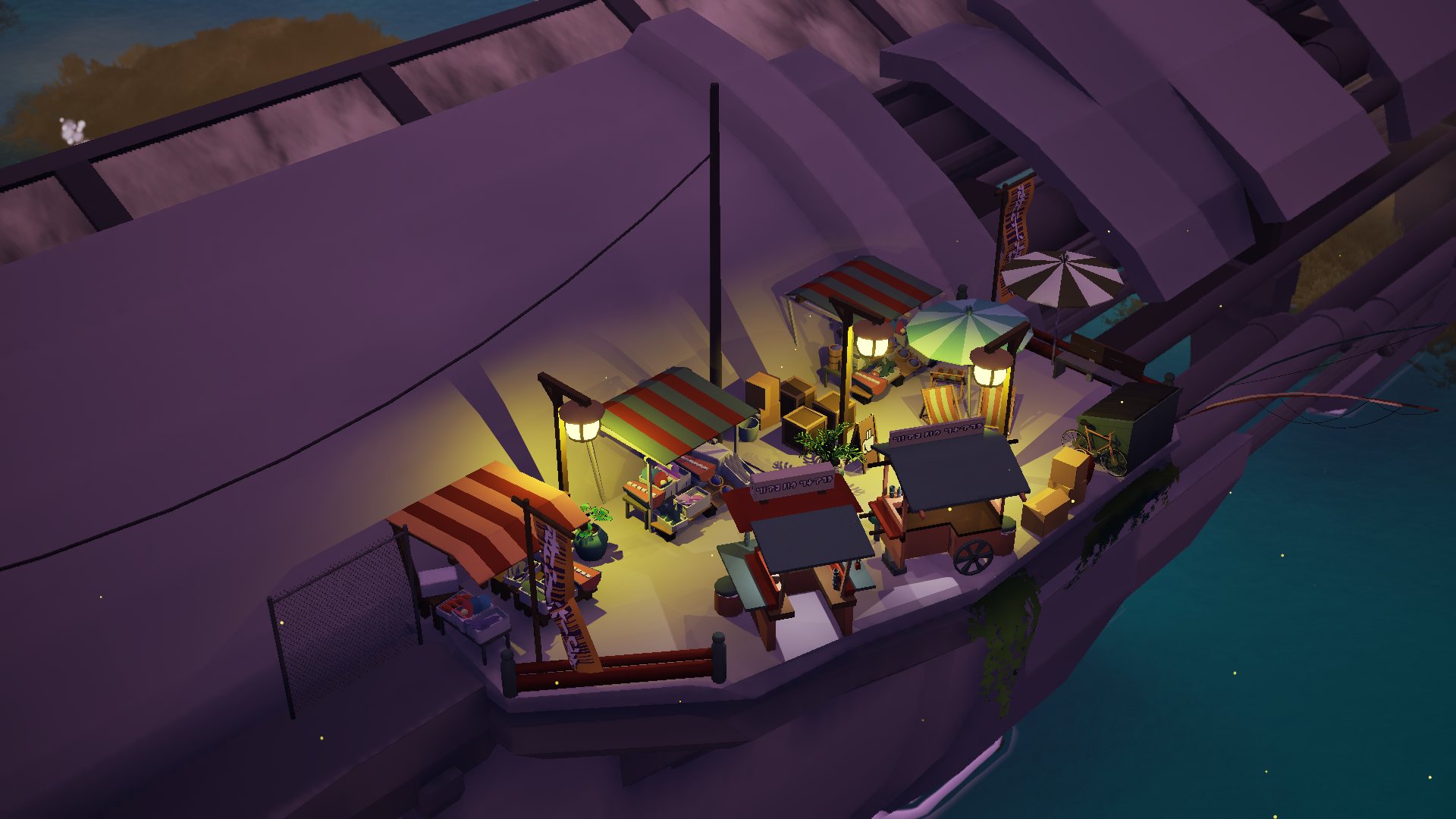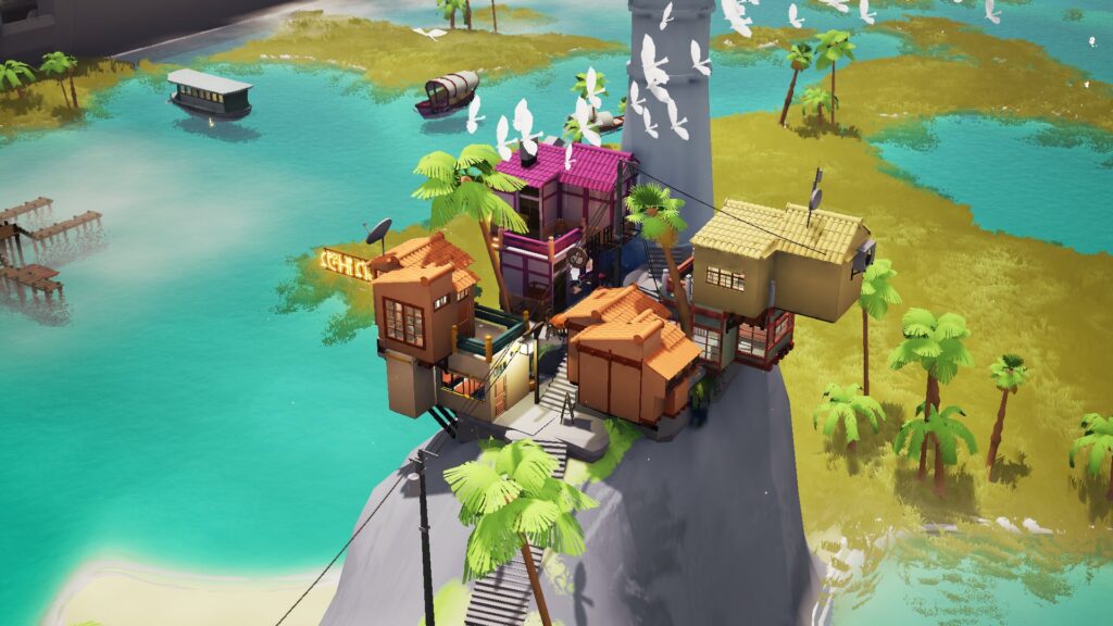 D'excellentes idées pourtant. Comme la possibilité de mettre la scène sur "pause" pour construire sans se donner le mal de mer (indispensable lorsqu'on s'établit sur une barge... ou le dos d'un flamand rose !). Ou le changement de météo à la volée (triste quand il se met à pleuvoir). Ou, ce que j'ai vu super tard, un calque pour afficher les améliorations des bâtiments d'un seul coup (Alt si vous cherchez).