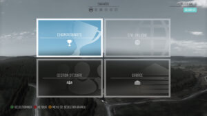 Dans l'Atelier, il est possible de faire quelques réglages sur le véhicule, histoire de l'adapter au tracé et aux conditions (météo et type de sol). En avançant dans le mode, et au fur et à mesure que l'équipe de mécanos évoluera, vous aurez accès à des réglages plus avancés.